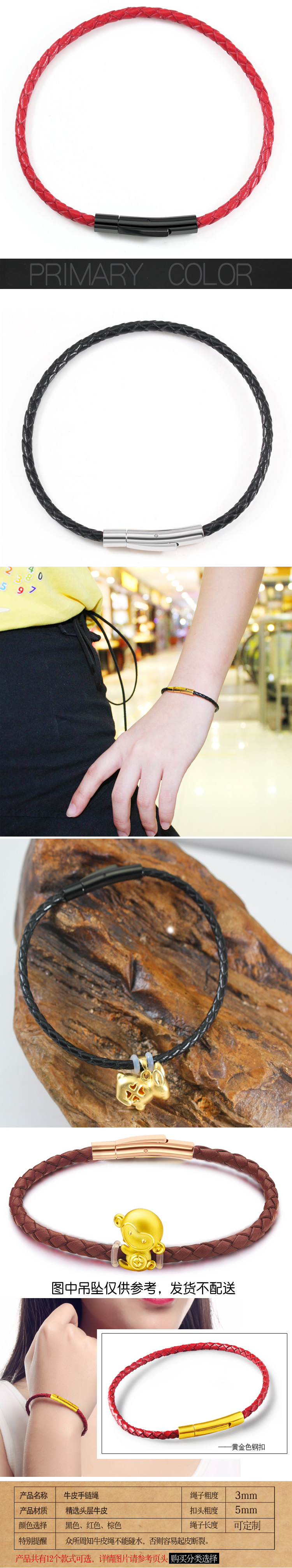 穿3D硬金手链绳饰品红绳黑色皮绳手环黄金转运珠串珠男女真皮手绳