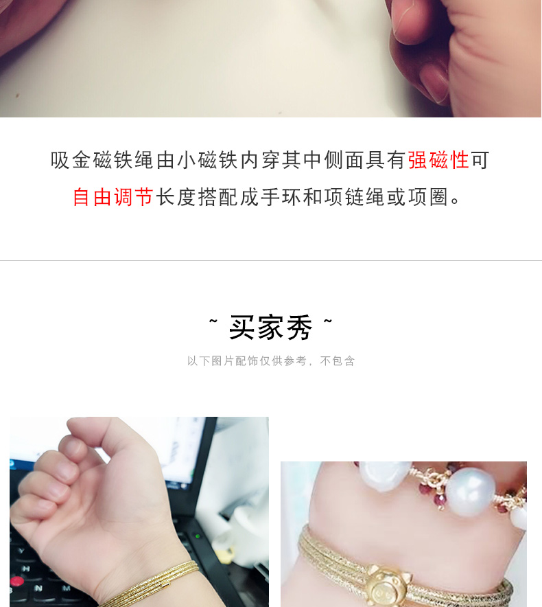 吸金绳穿3D硬金转运珠手绳磁铁手链串珠磁力绳多圈手绳路路通红绳