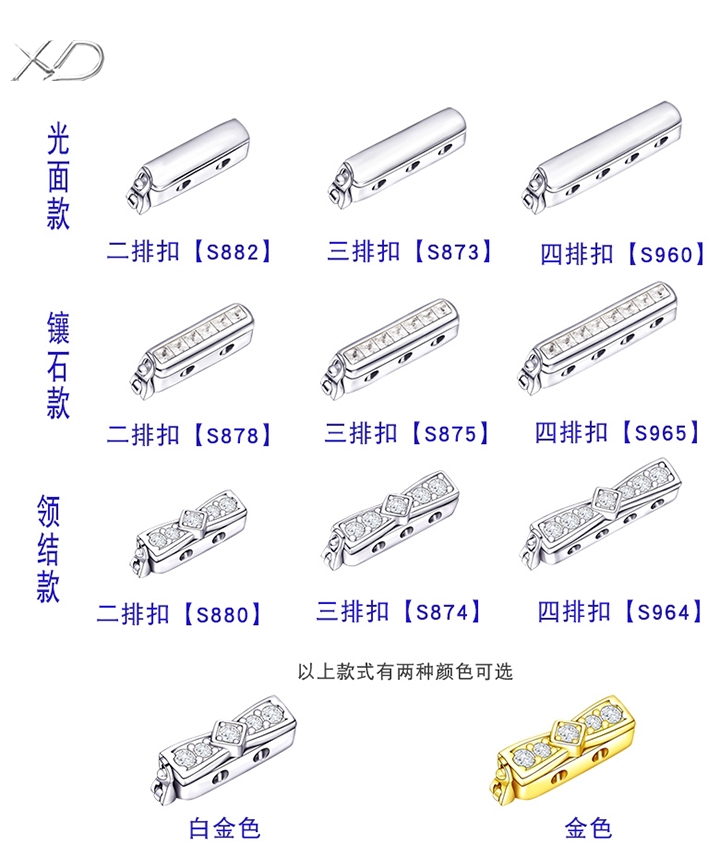 多排珍珠项链扣子双层二排扣手链三排搭扣S925银连接扣diy配件S878 S875 S965 S880 S874 S964