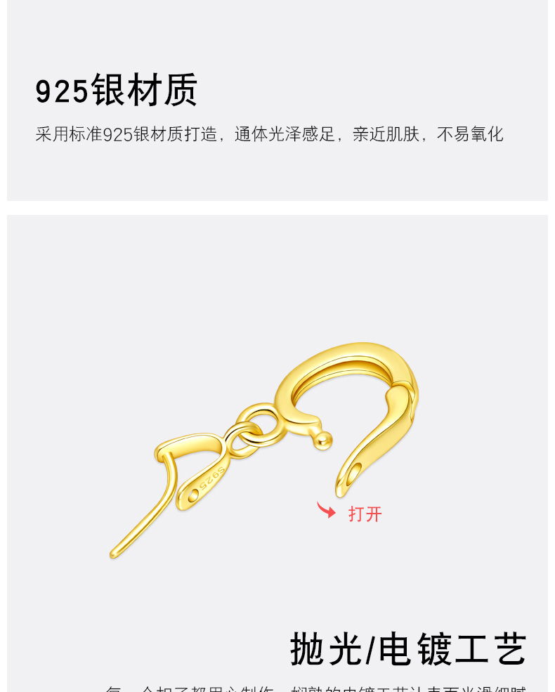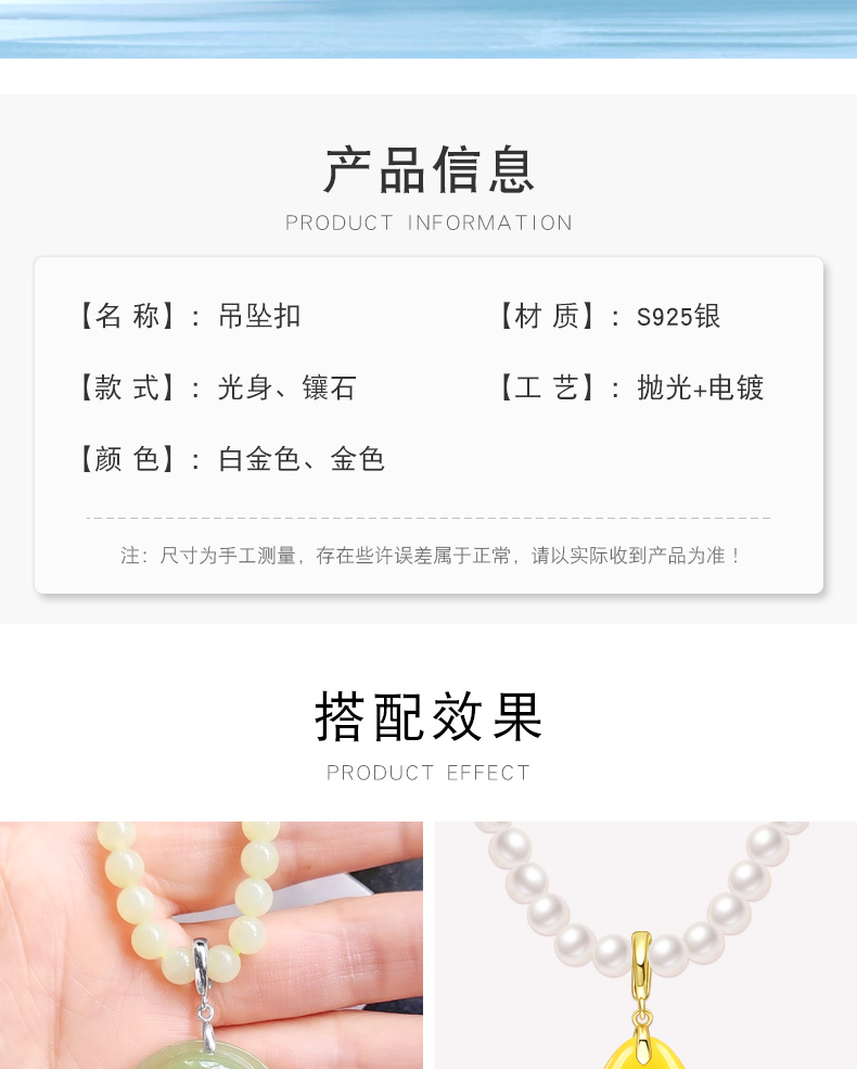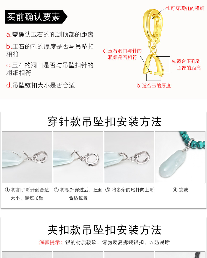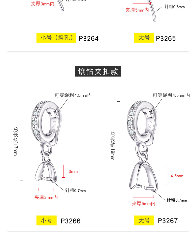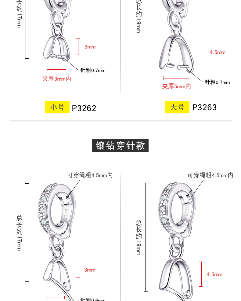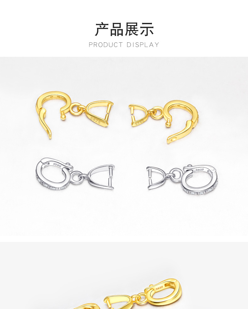 S925纯银斜孔扣佛公观音吊坠扣小貔貅扣黄金色翡翠扣开口款穿针扣 P3264 P3265 P3266 P3267