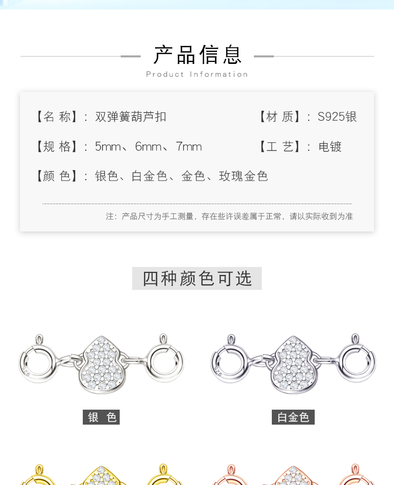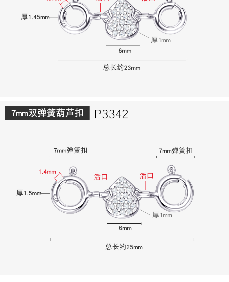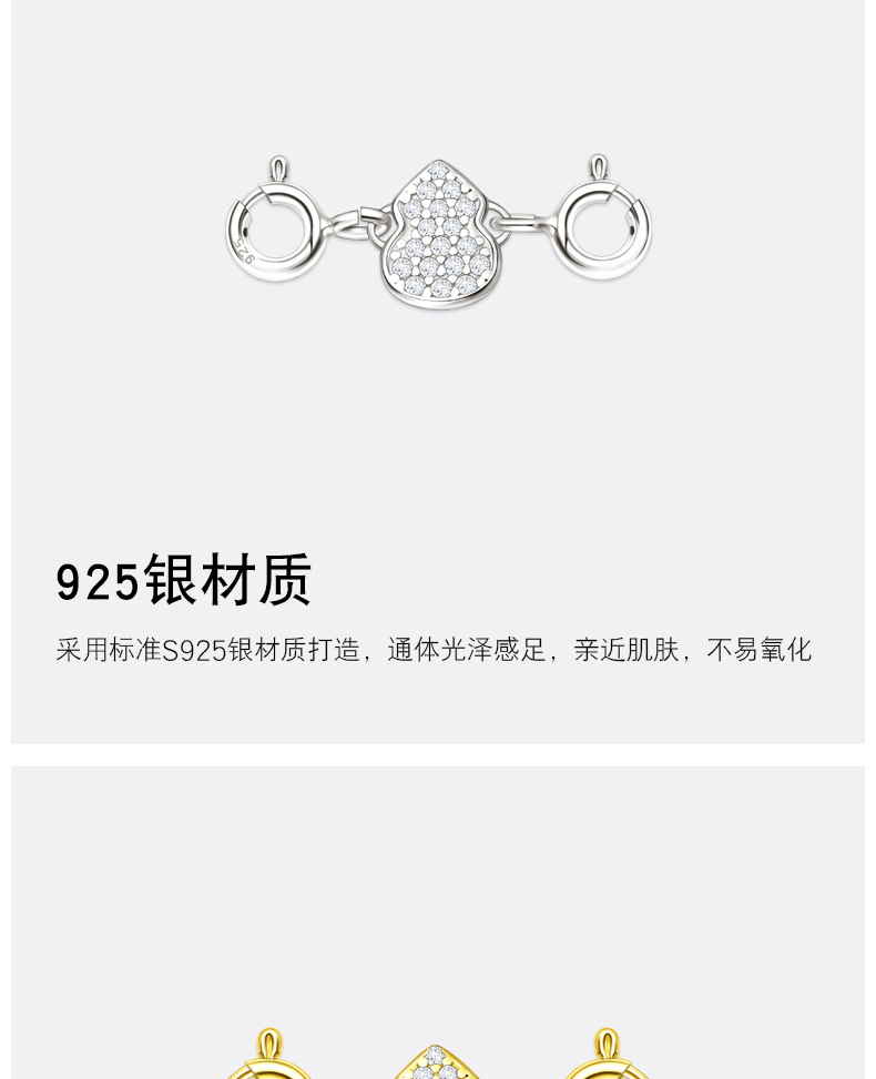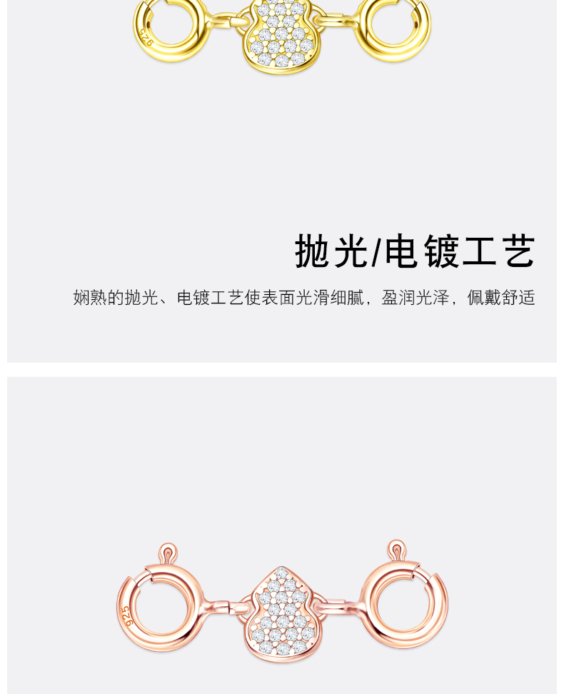 s925银项链连接扣子葫芦微镶双头弹簧扣延长扣珍珠串珠扣头配件