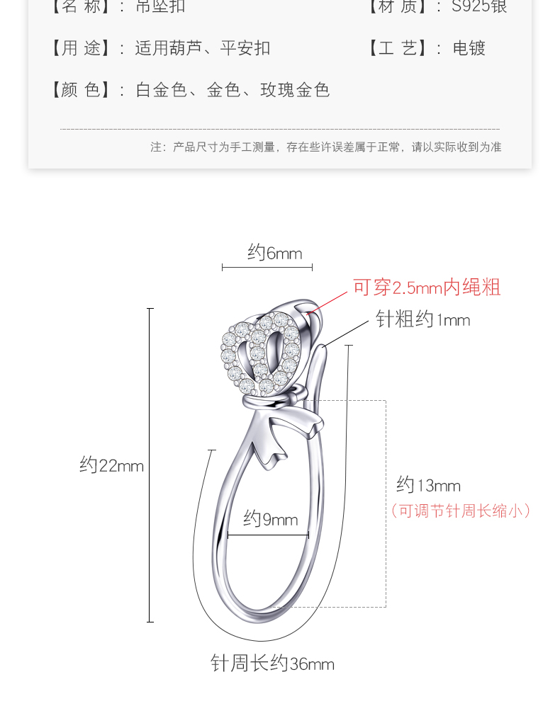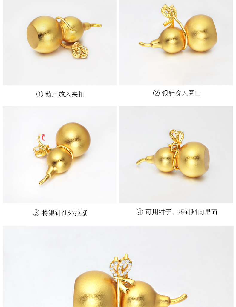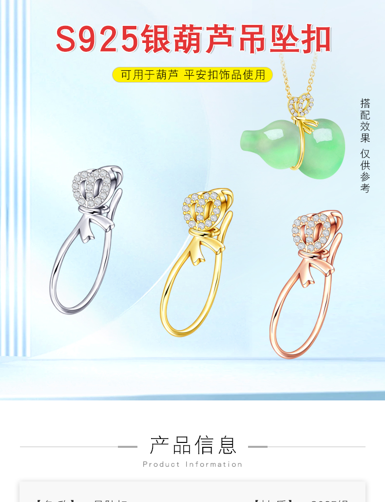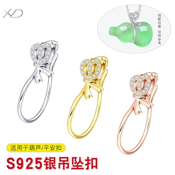 S925银钱袋吊坠扣子 diy蜜蜡和田玉葫芦银夹扣包绕葫芦夹扣银扣头