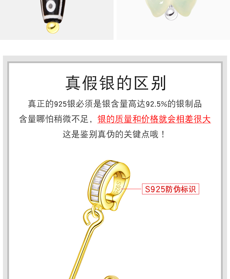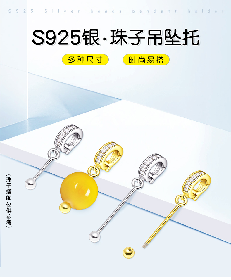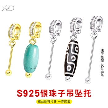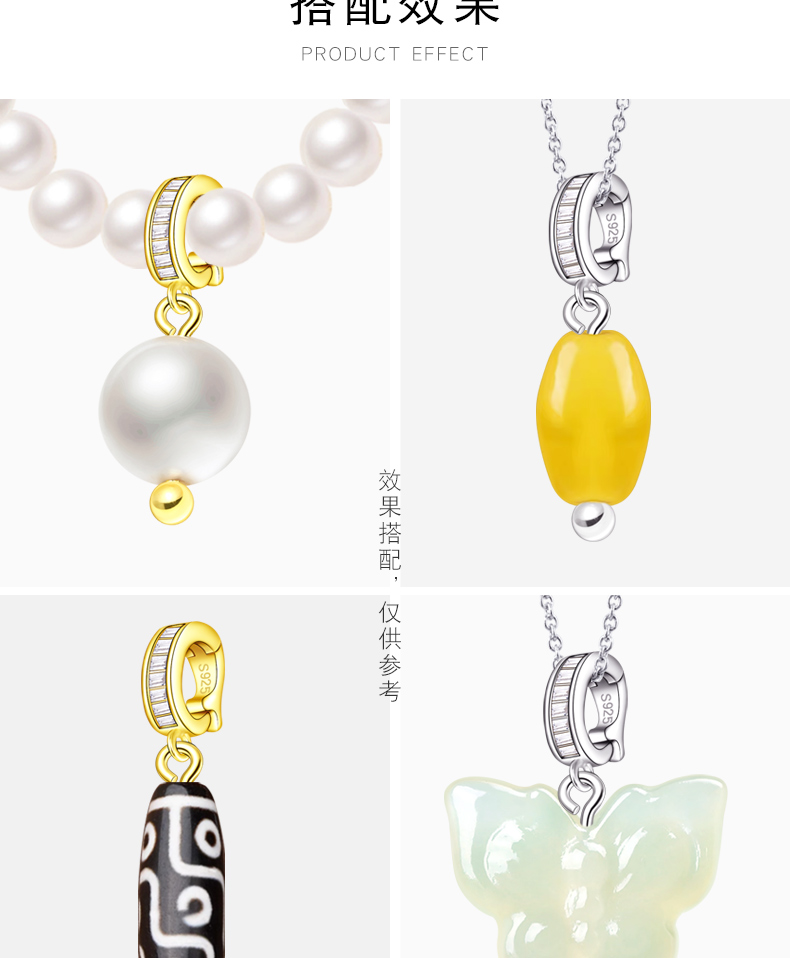 s925银珍珠吊坠扣头diy镀18k金转运珠扣头路路通圆珠通孔扣子 P3303 P3304 P3305 P3306 P3307 P3308