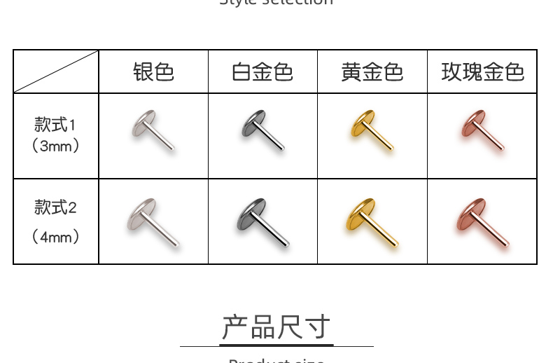 925银T形针托,规格:3mm,珠子底…