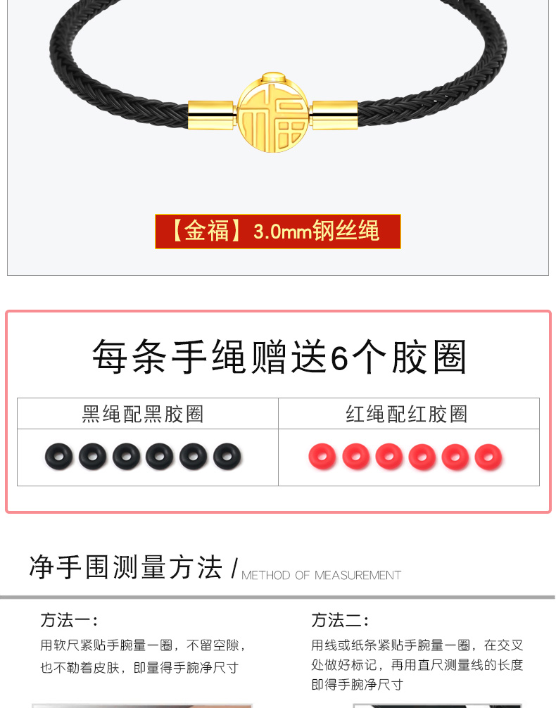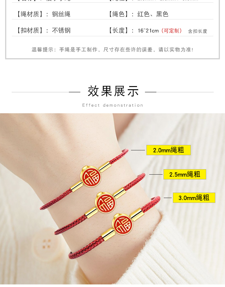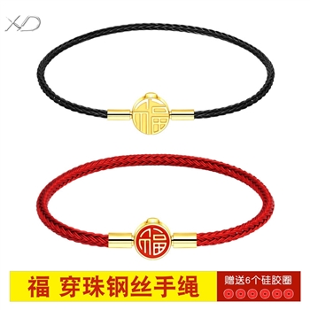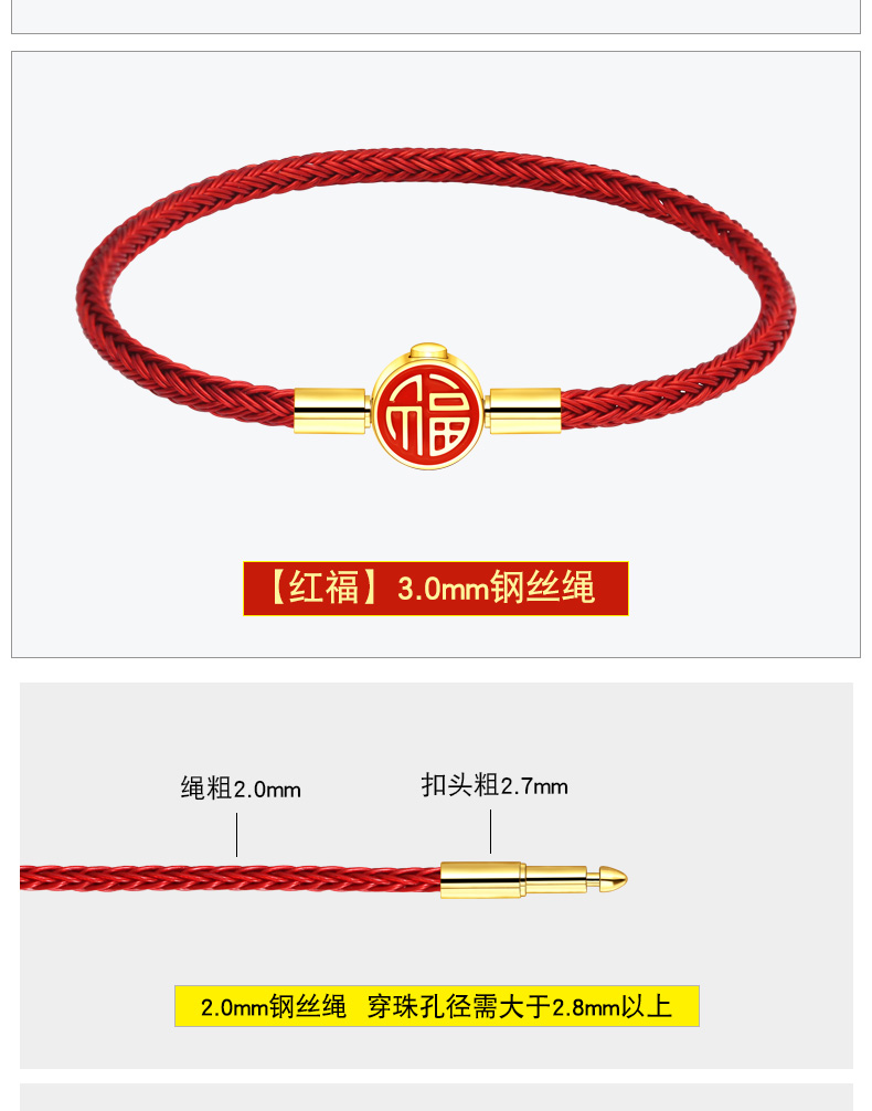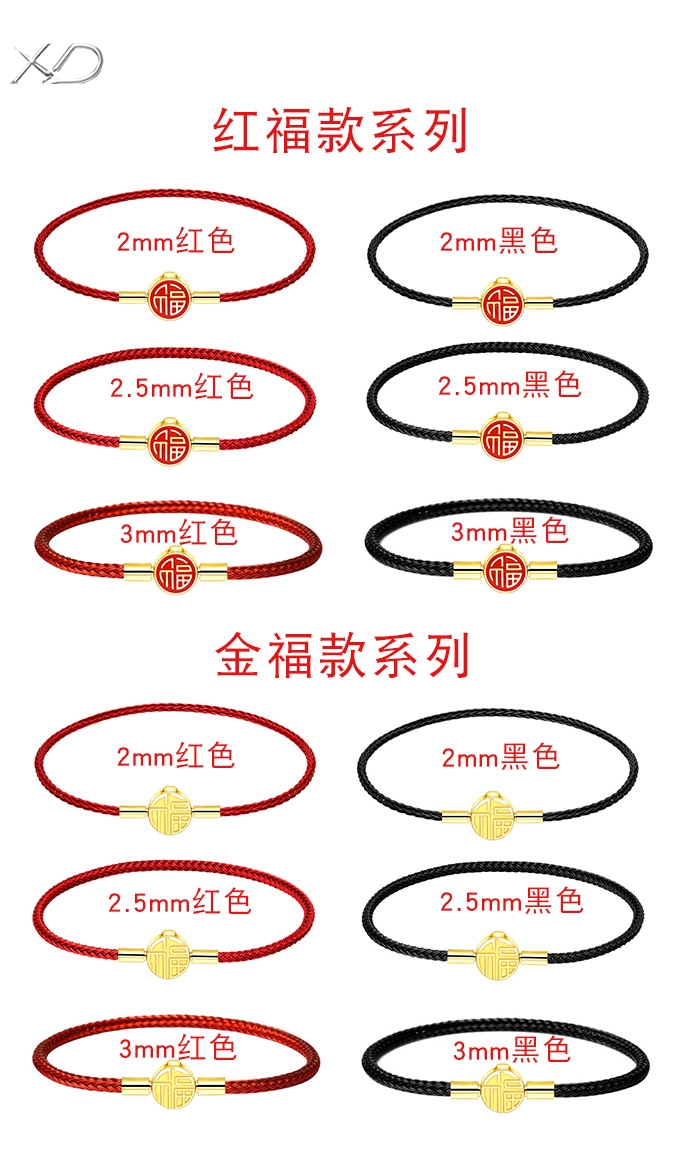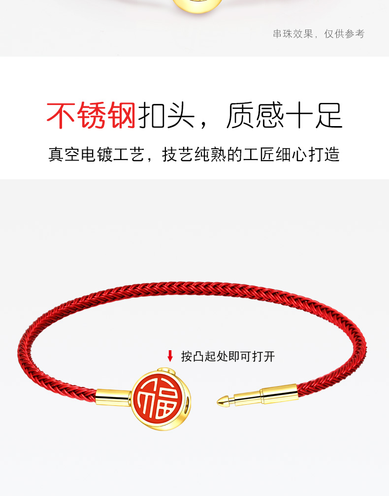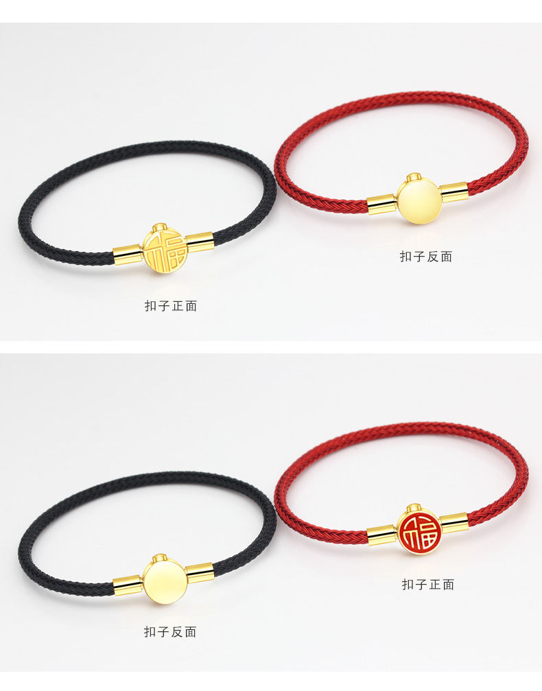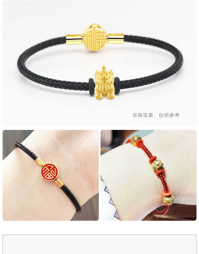 福字手绳手链可串穿3D黄金转运珠子牛皮绳替换钢丝绳本命年红绳女 MB354 MB355 MB356