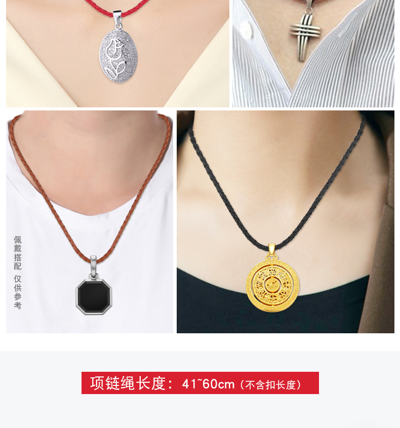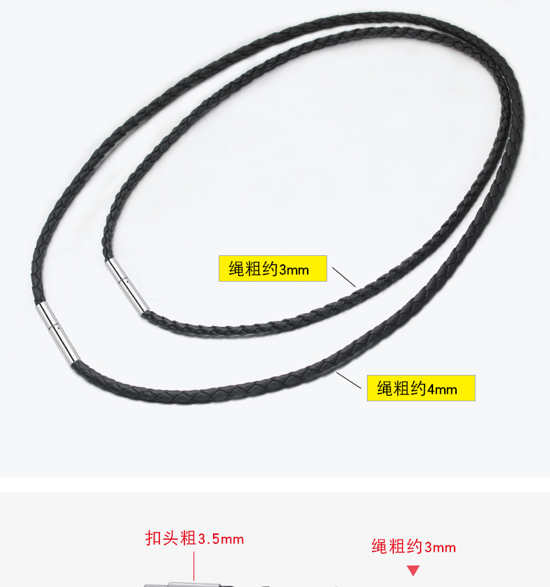 【PU绳钢色米粒扣】项链绳吊坠挂绳蜡绳黄金玉佩玉坠绳男女款红绳子女士锁骨链