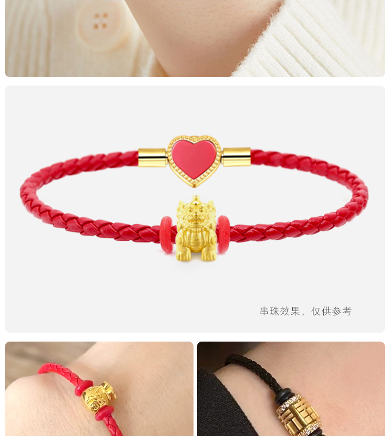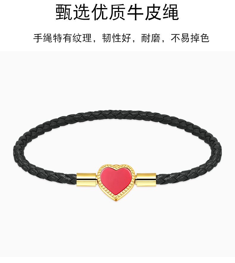 【红心皮绳】女士皮绳心型爱心可爱甜美红绳穿黄金珠手链手绳闺蜜礼物送女友