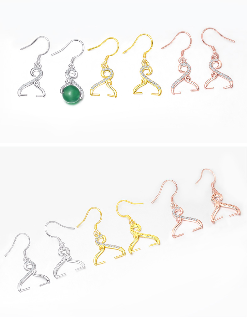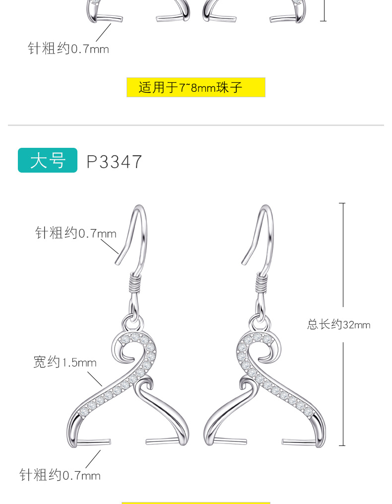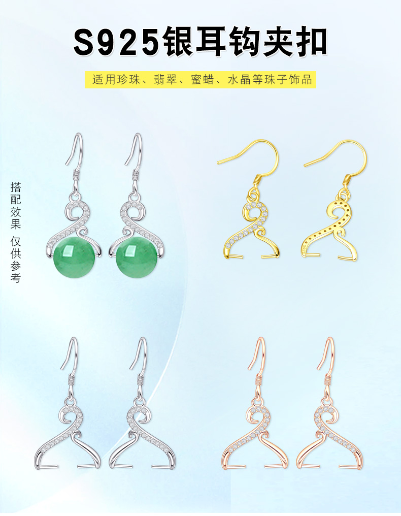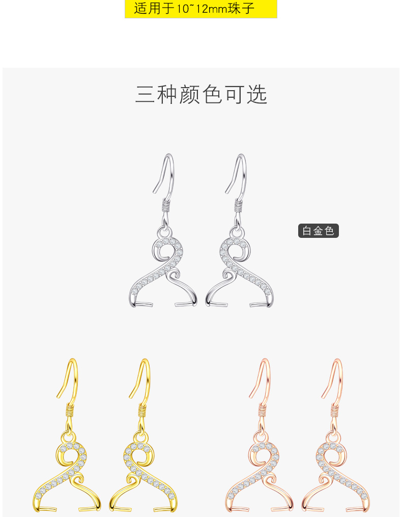 925银耳钩夹扣横夹子珠子空托diy圆珠耳环配件材料