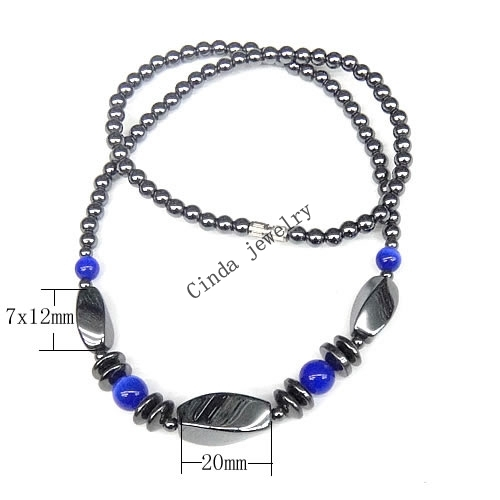 长方形四面珠黑胆石项链,磁疗黑胆石首饰,尺寸:18寸,时尚黑胆石饰品