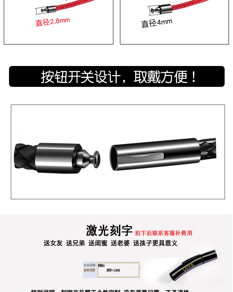 可刻字吊坠挂绳蜡皮绳男女款黄金玉佩项链绳挂坠绳红色黑绳子