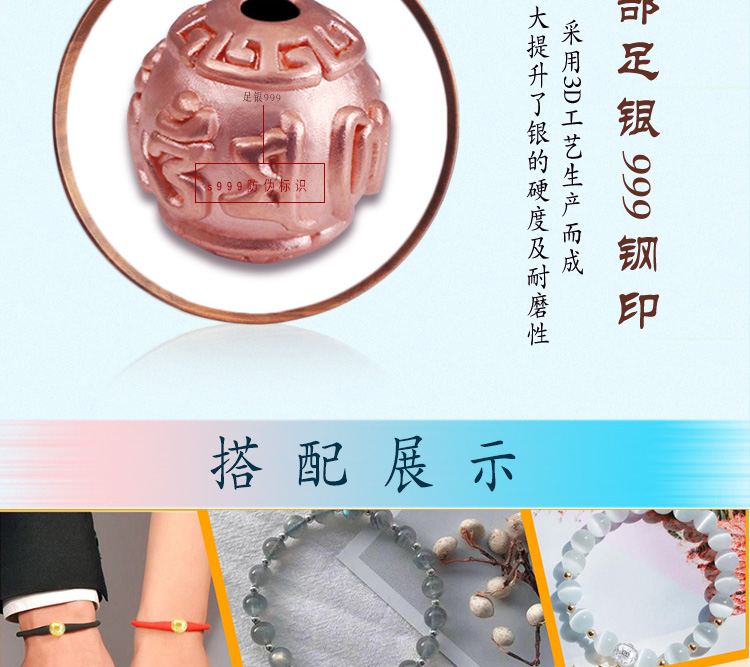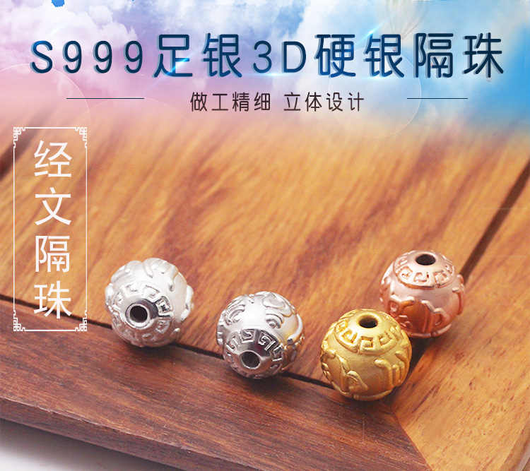 99足银六字真言3d硬银隔珠,规格:12mm,diy隔珠,银隔珠,3d硬银隔珠