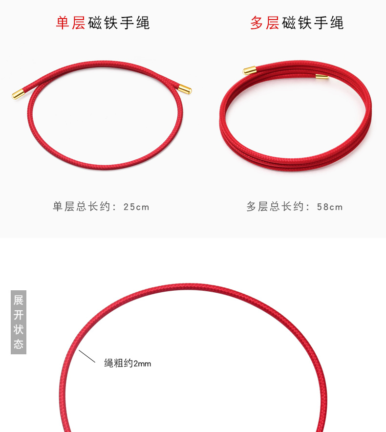 吸金绳穿3D硬金转运珠手绳磁铁手链串珠磁力绳多圈手绳路路通红绳