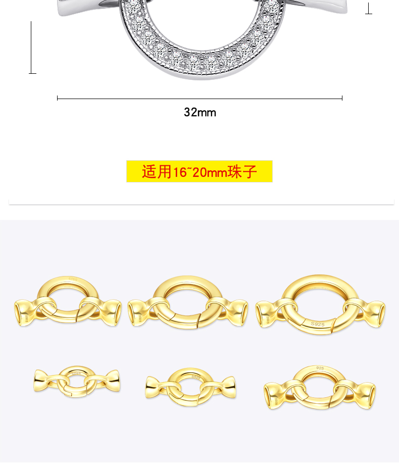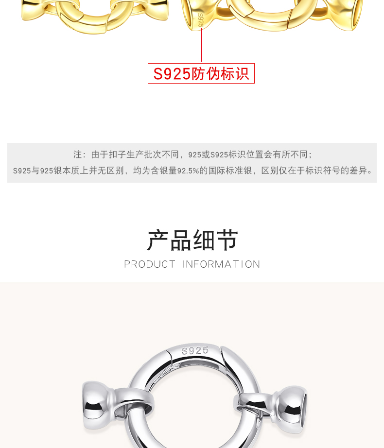 穿串珍珠项链扣S925银手链搭扣连接维修扣毛衣链手串扣头配件 S1181 S1180 S820 S821