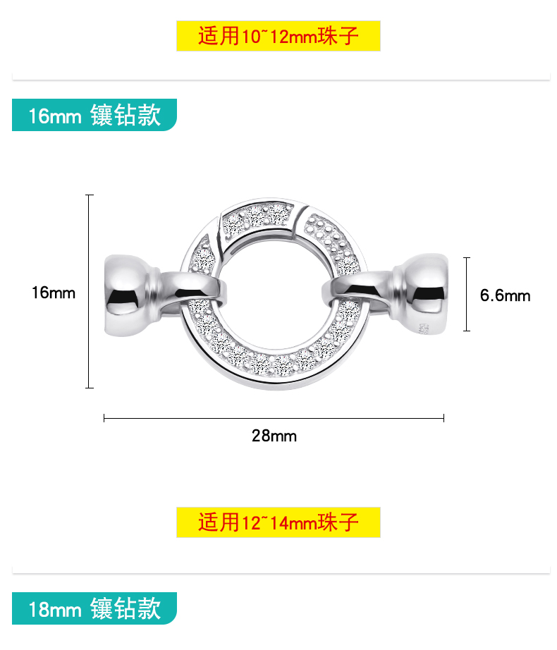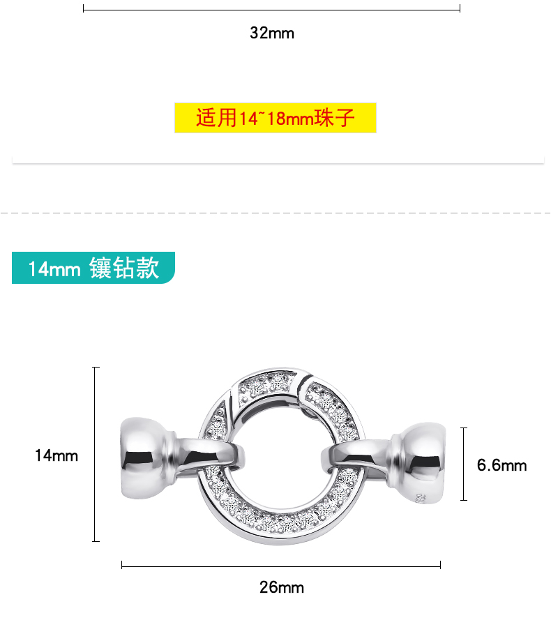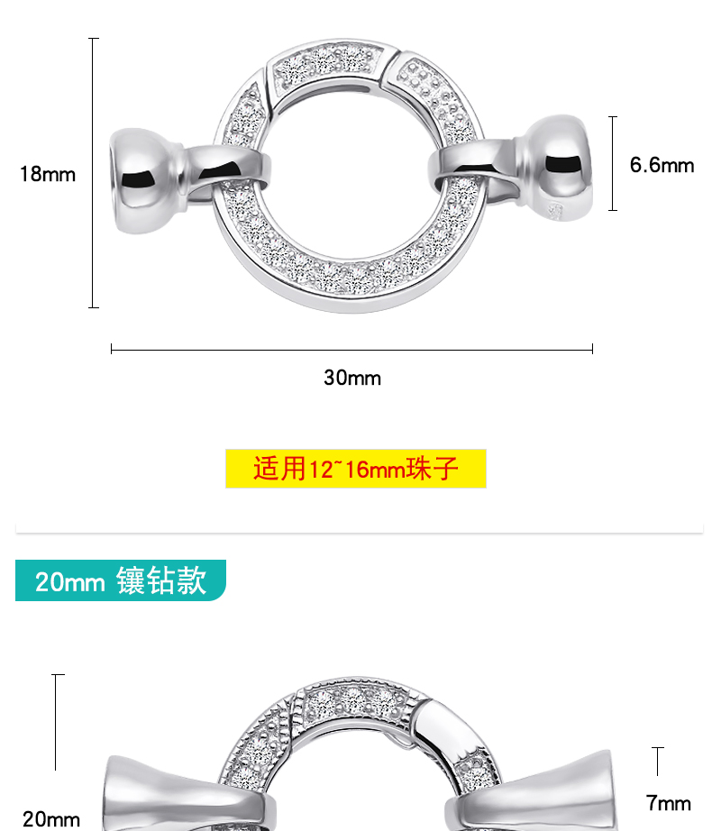 925银袋镶锆镀白金项链包扣,规格…