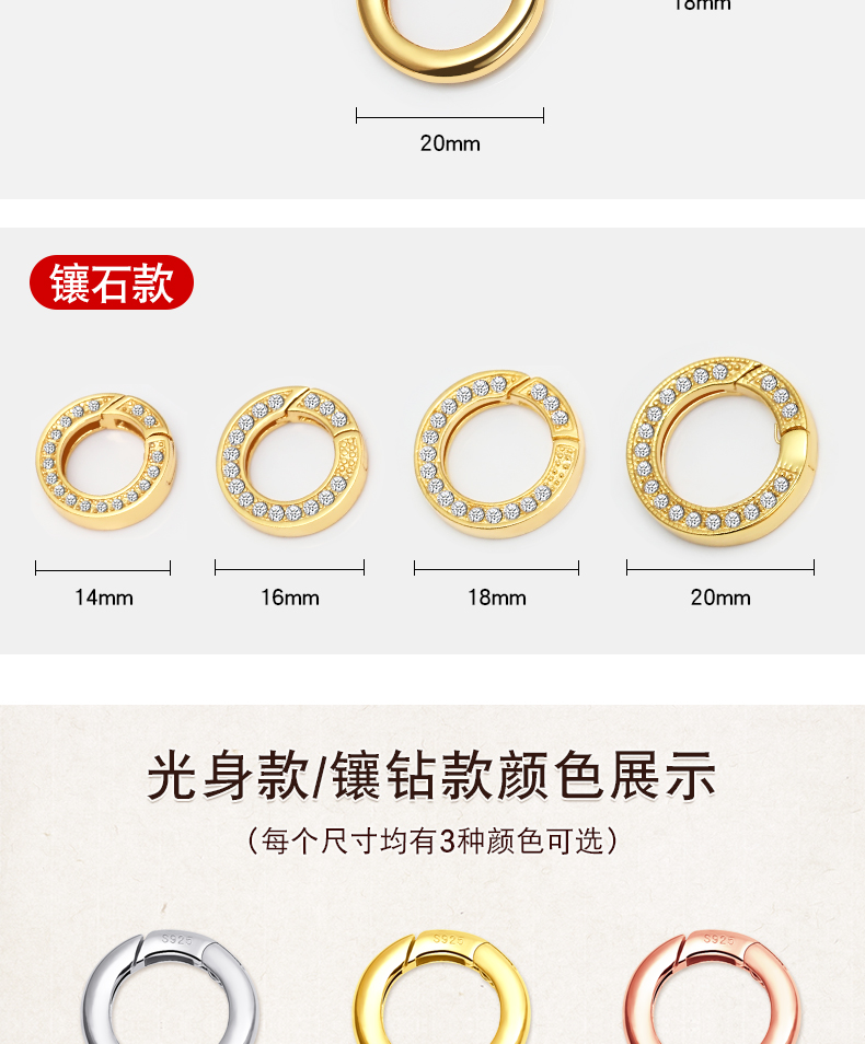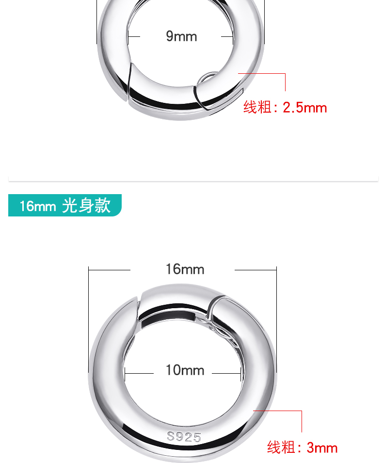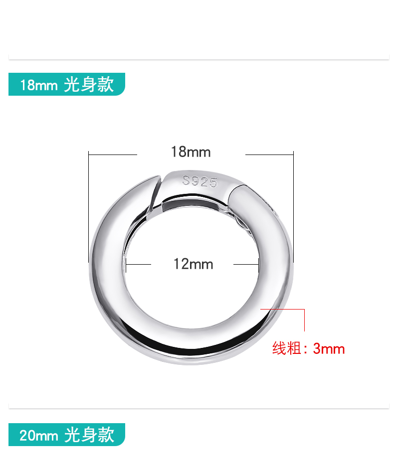 s925银开口圈连接环活口环diy配件手链项链diy配件挂扣银环银圈 P2642 P2543 P2644 P2645 P2727 P2884