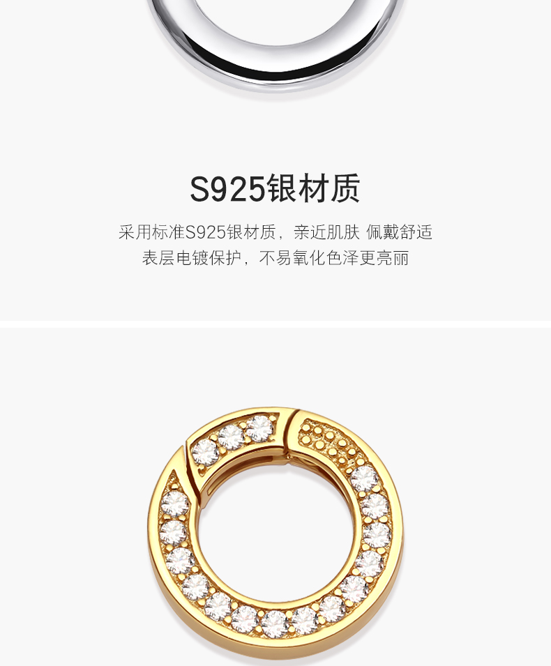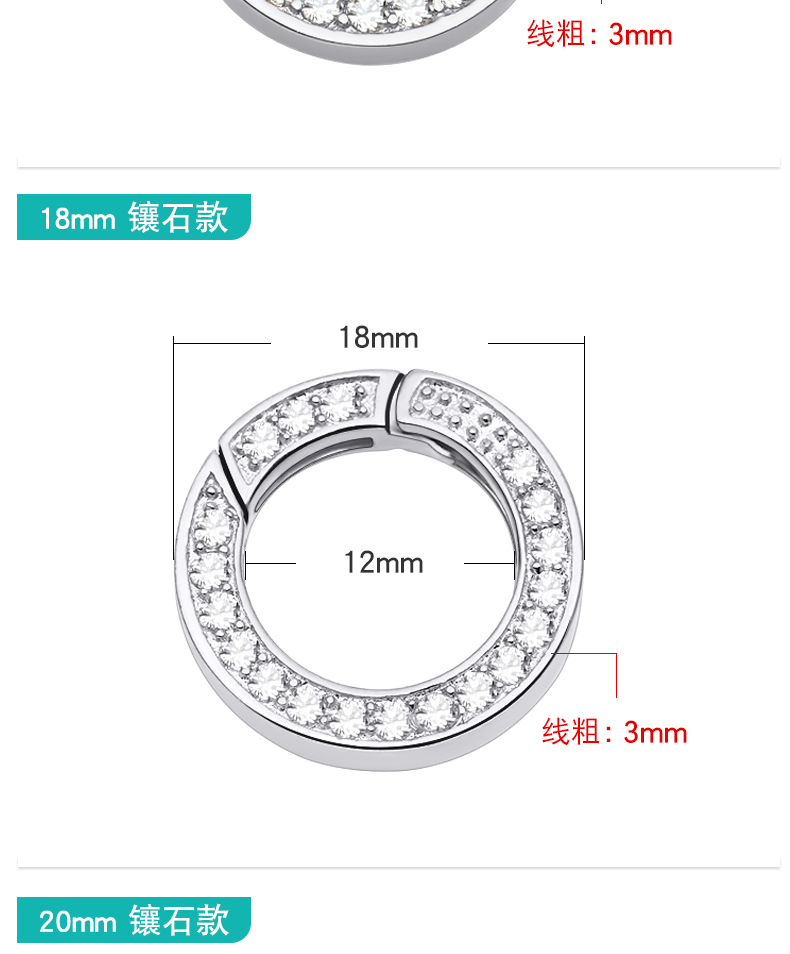 925银袋镶锆镀白金项链包扣,规格…