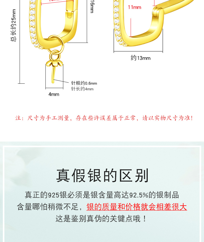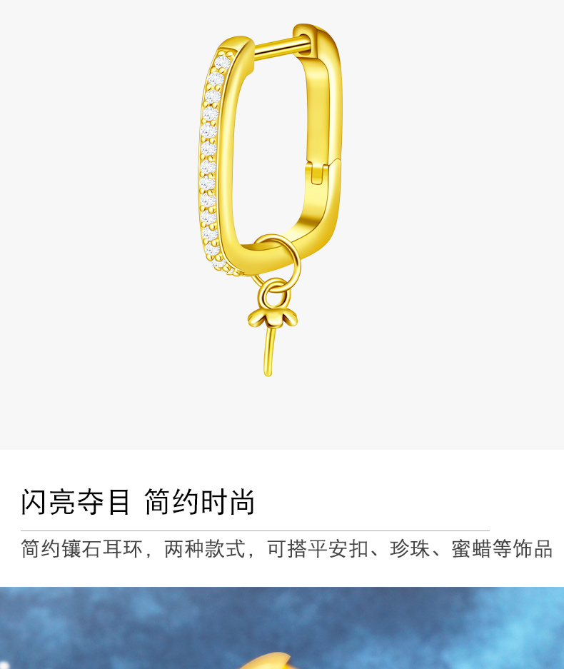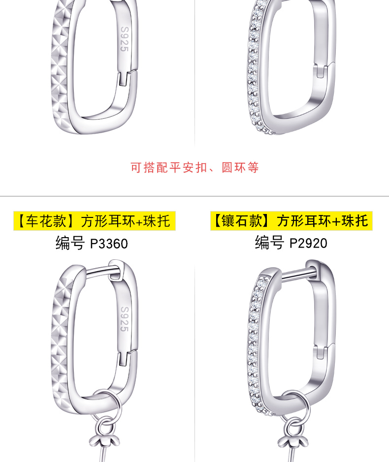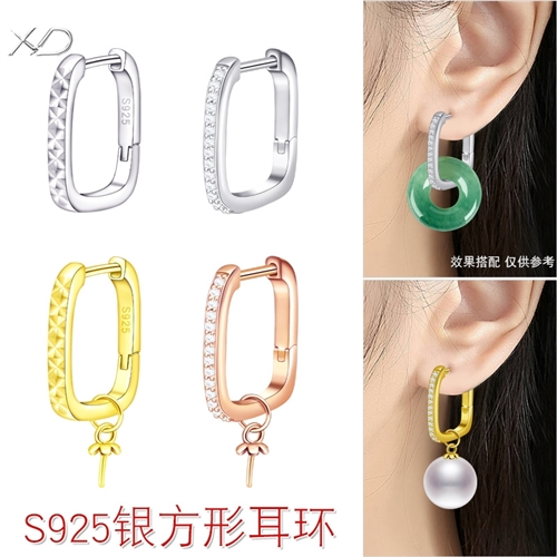 S925银耳钩平安扣耳环空托镶嵌蜜…