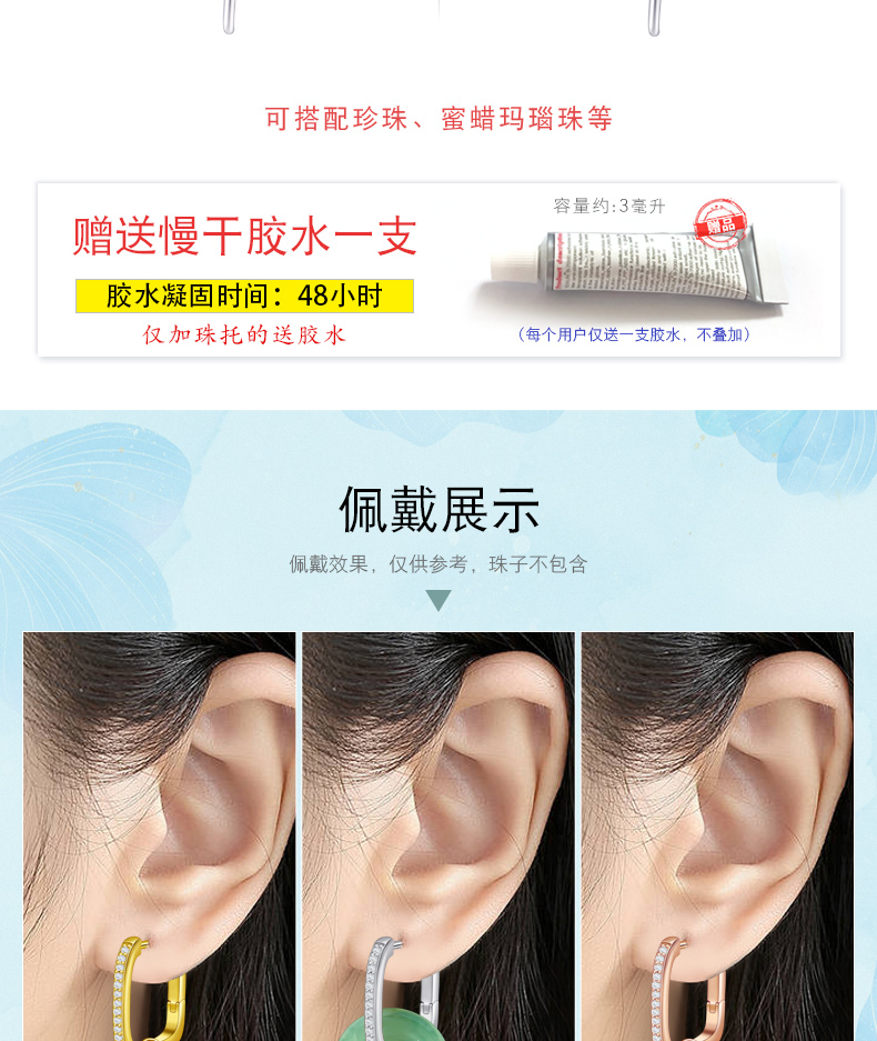 平安环翡翠耳圈S925银平安扣耳扣空托圆环水晶圈圈耳环diy配件