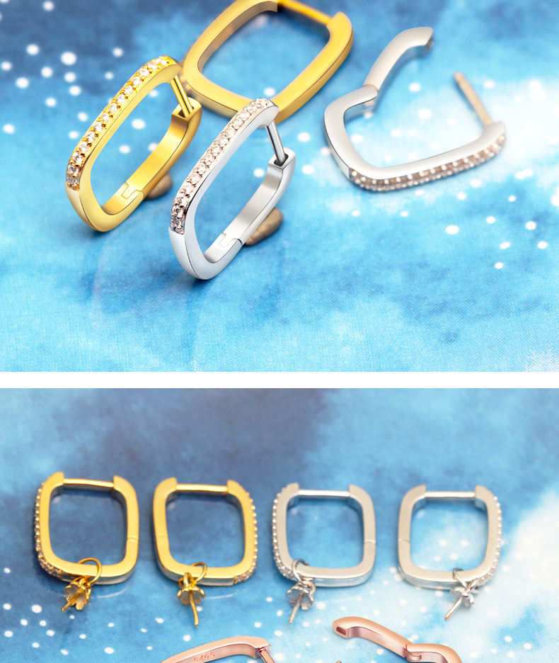 P2923镶石款方形耳环玫瑰金色*2.45g
