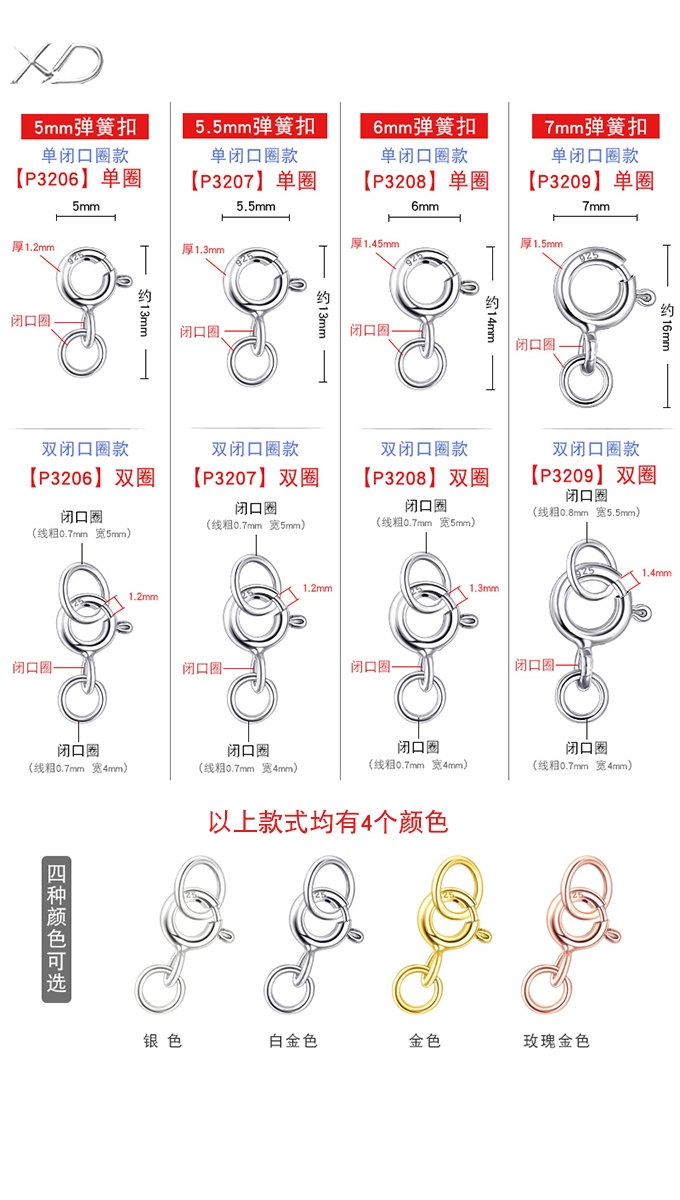 【厚款】S925银珍珠项链扣头弹簧扣连接扣编绳手链扣子diy配件 P3208 P3209