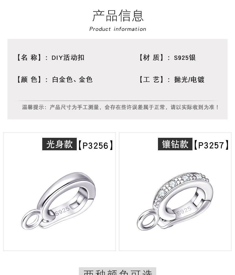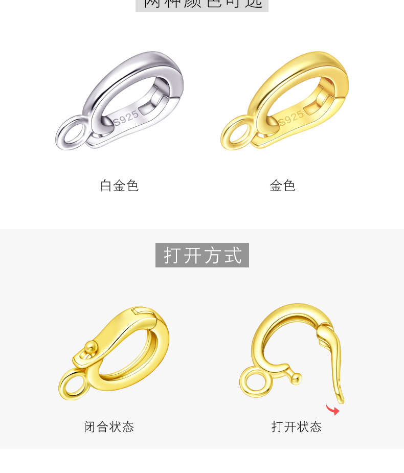 S925银镀18K链接扣珍珠项链尾扣珠扣头可拆卸开口吊坠扣DIY手工