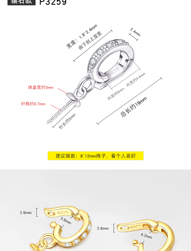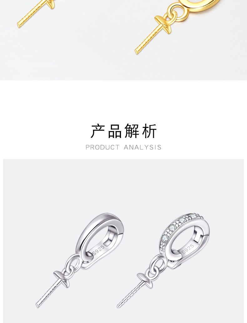 925银镶嵌吊坠扣粘珠吊坠托DIY圆…