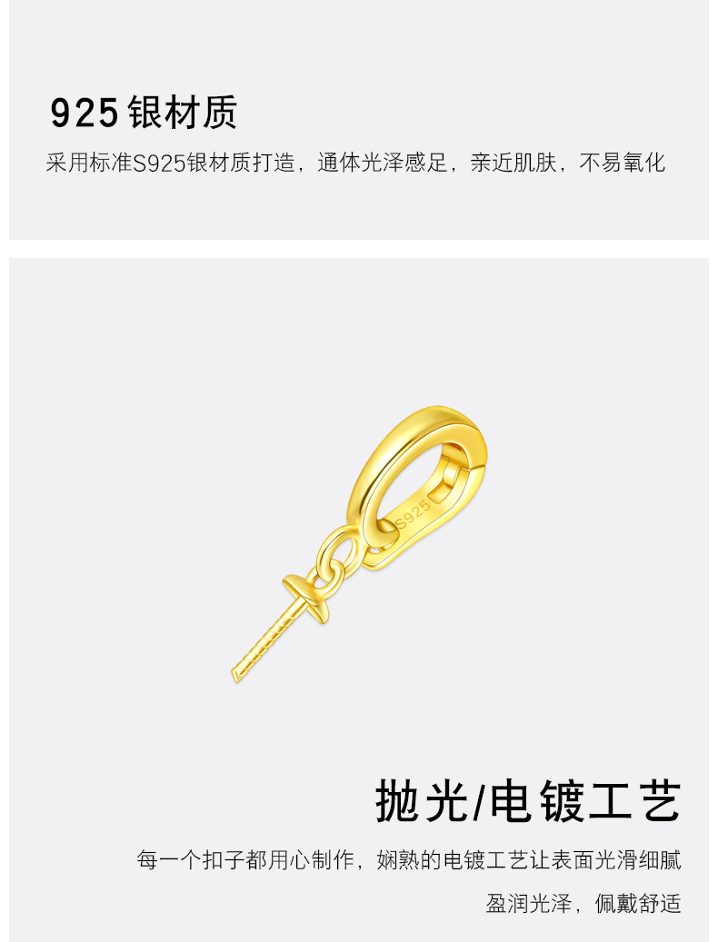 S925银珍珠项链扣手链搭扣diy配件 吊坠扣 项坠开关扣项坠挂扣