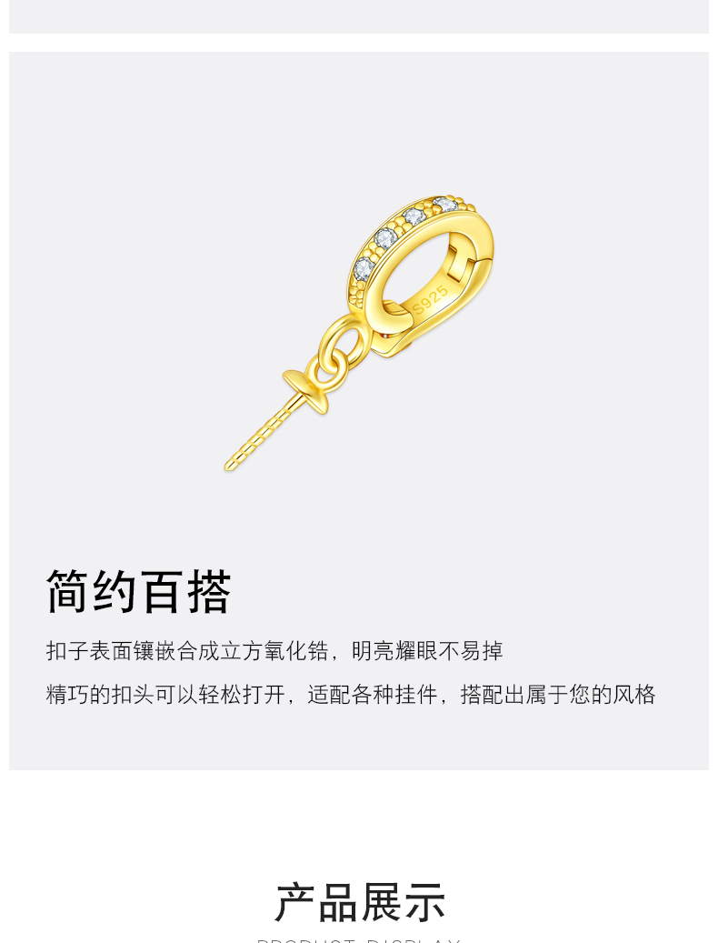 S925银镀18K链接扣珍珠项链尾扣珠…