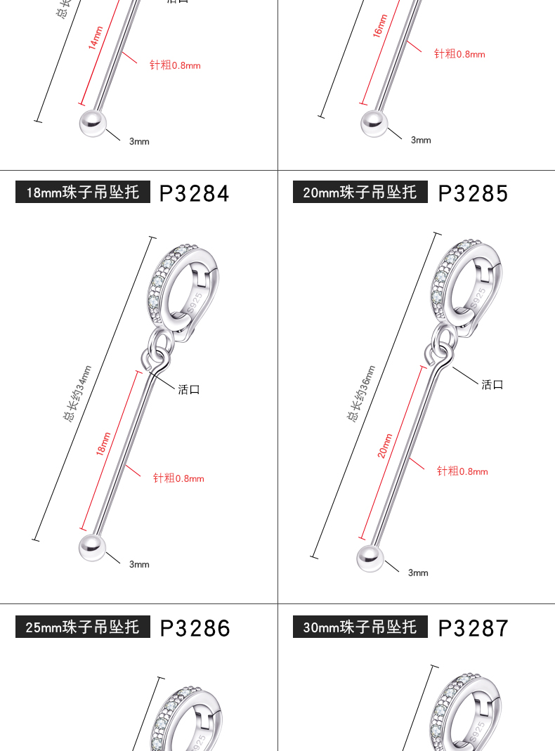 925银镶嵌吊坠扣粘珠吊坠托DIY圆…