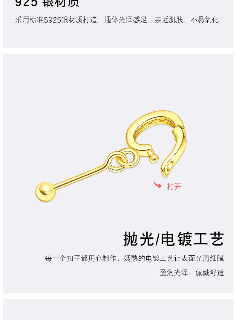 S925银镀18K链接扣珍珠项链尾扣珠…