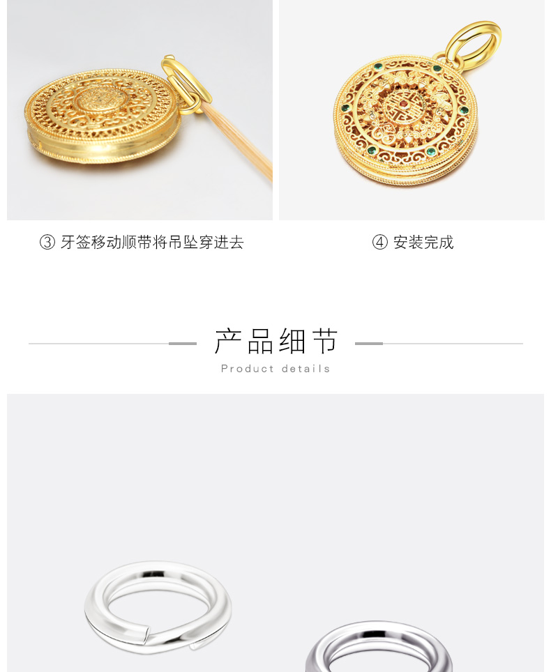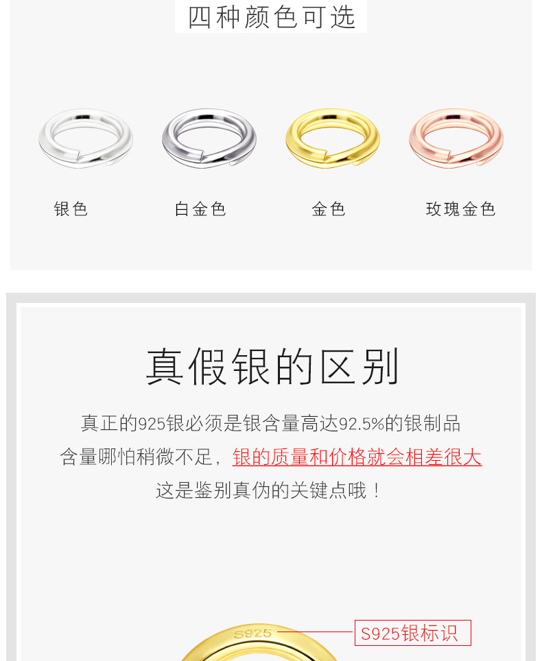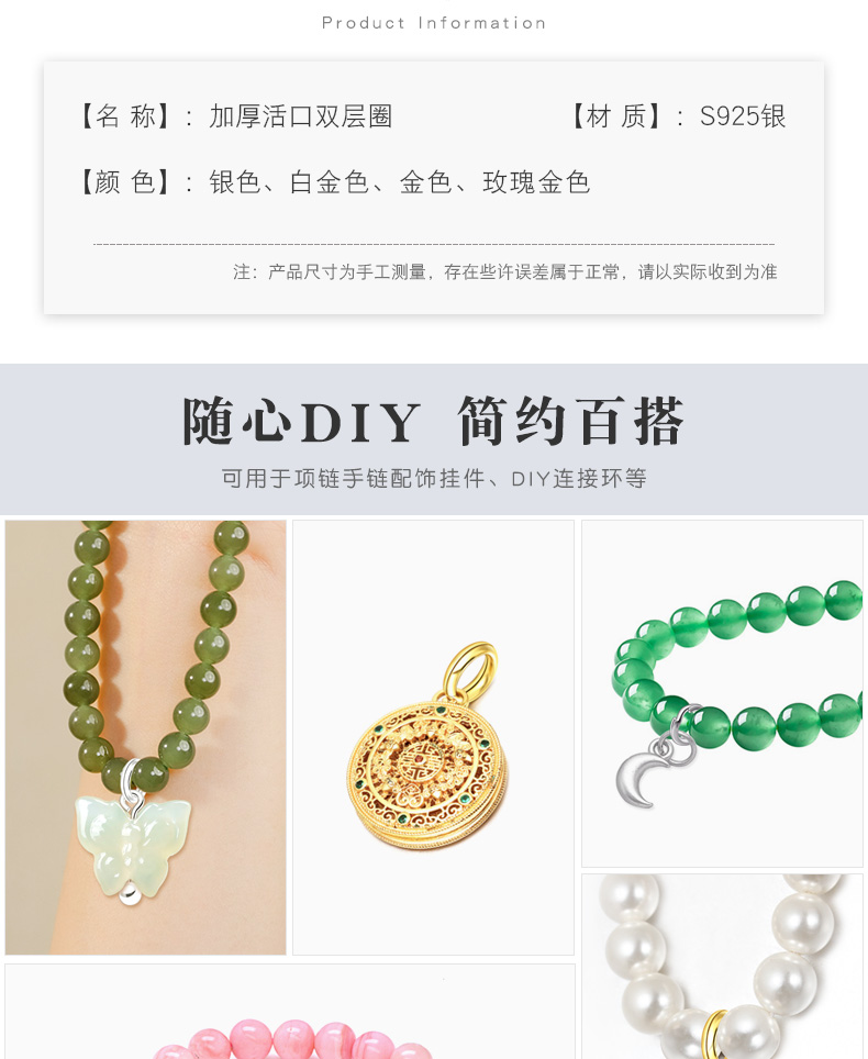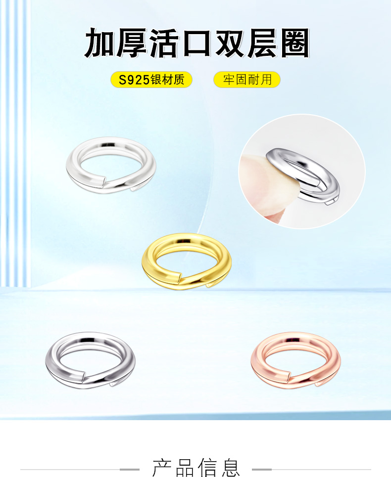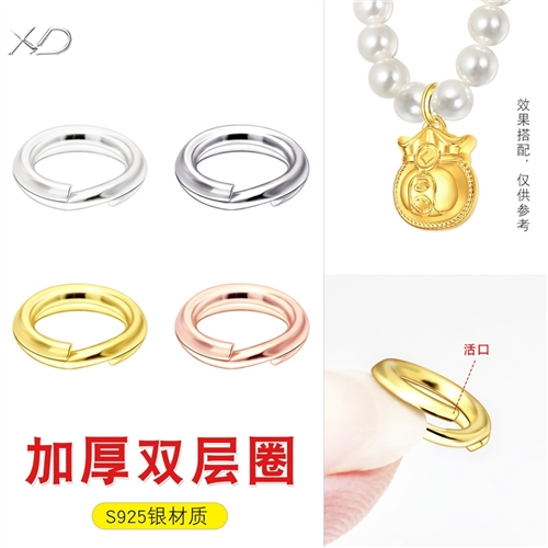 S925银双层开口圈项链和手链连接圈手工DIY饰品配件钥匙连接环