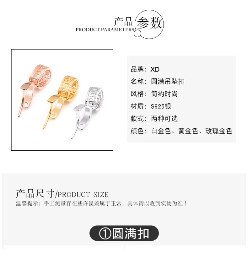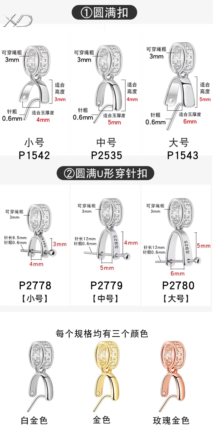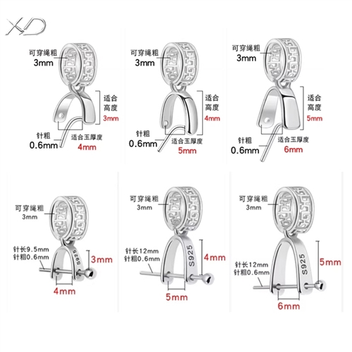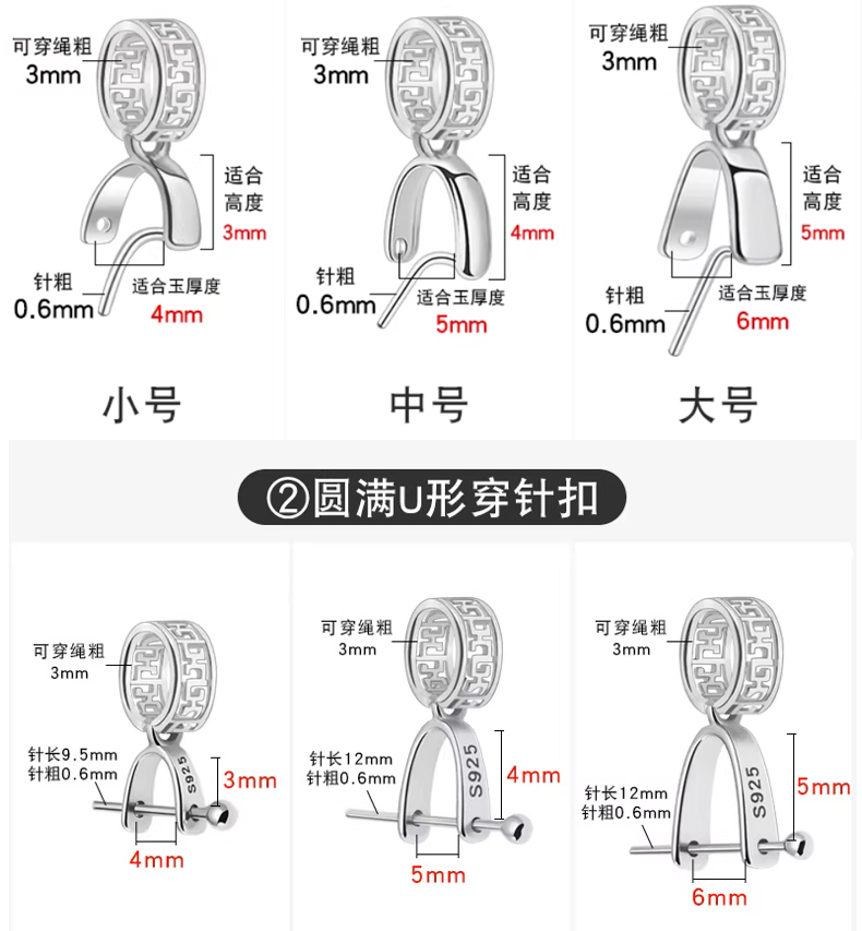 S925银镀18k金吊坠佛公扣玉坠夹扣银夹扣玉石蜜蜡扣头翡翠扣子 P1542 P2535 P1543