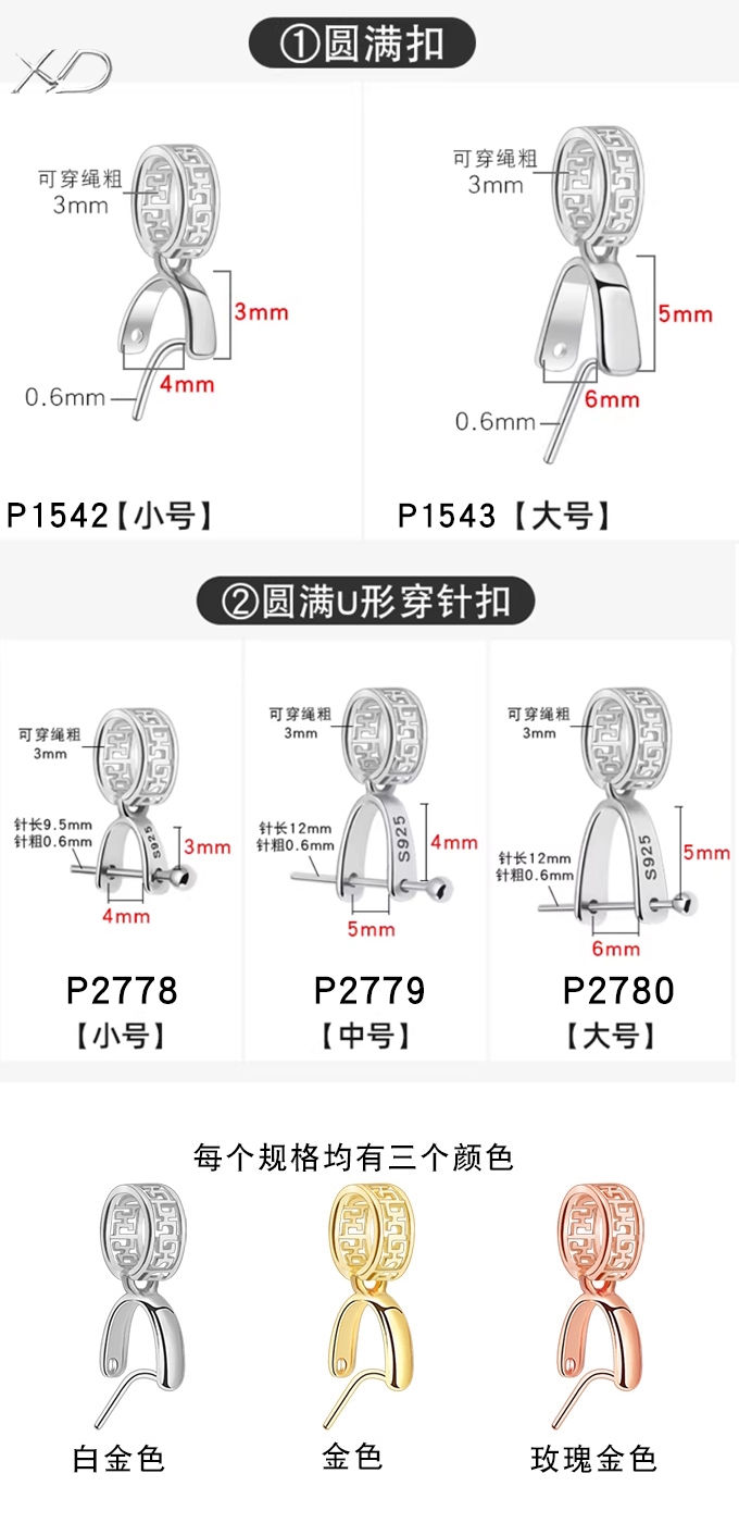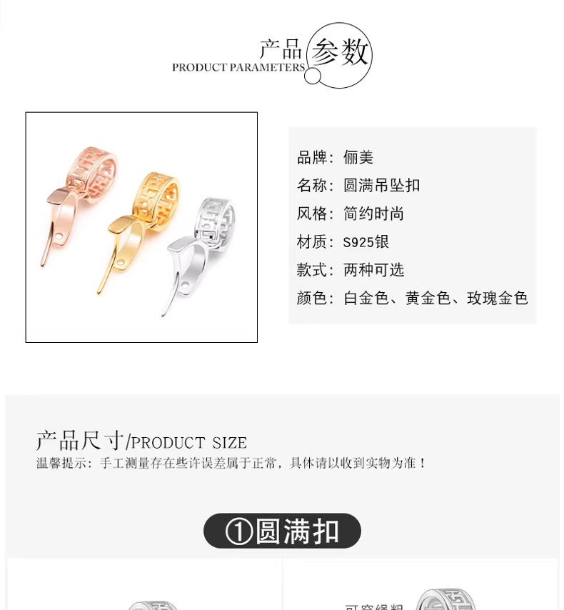 光面穿针吊坠扣