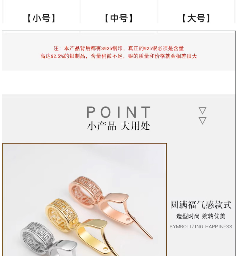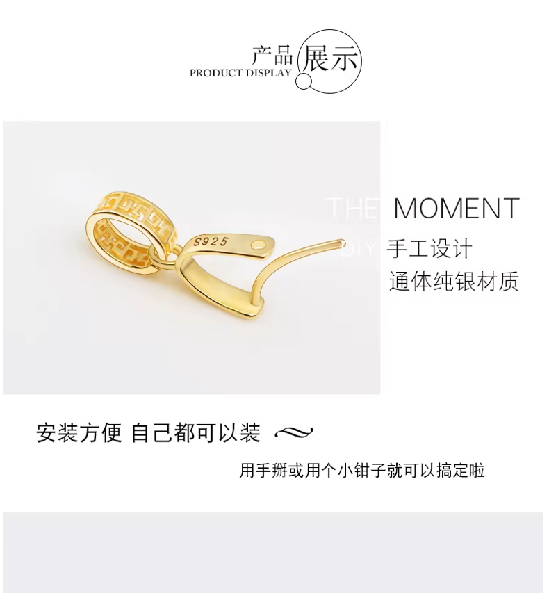 S925银镀18k金吊坠佛公扣玉坠夹扣银夹扣玉石蜜蜡扣头翡翠扣子