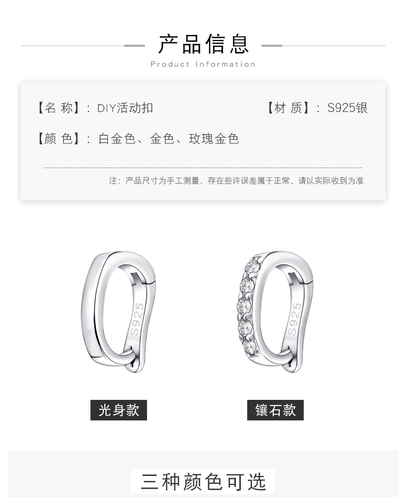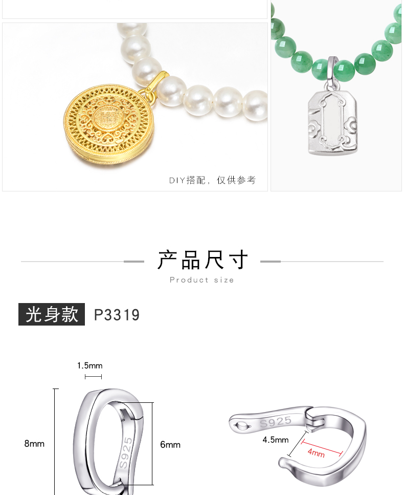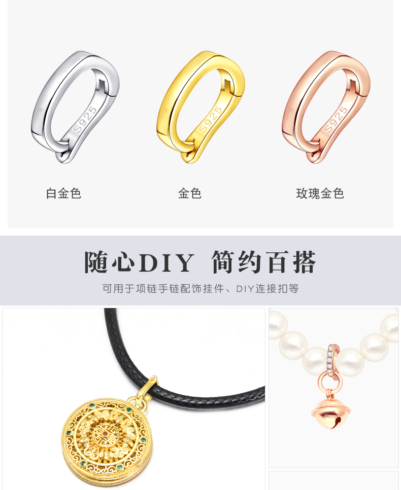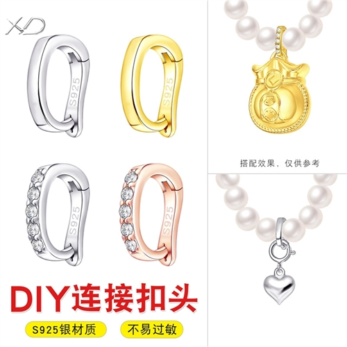 S925银可打开吊坠卡扣 机械扣 挂件连接扣 手工diy串珠材料配件