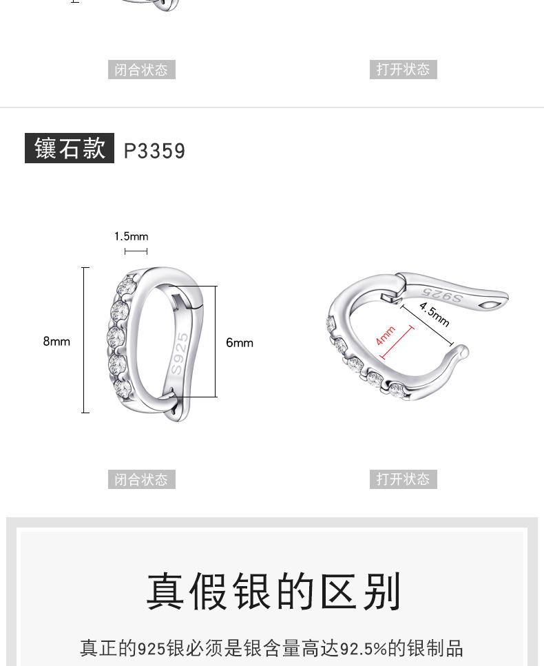 925银镀白金镶钻吊坠夹,规格:5…