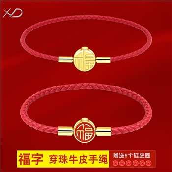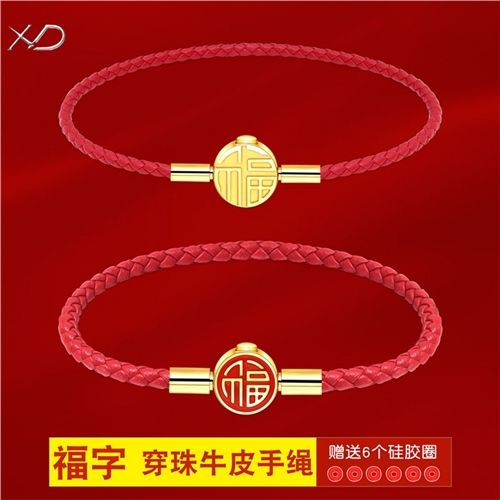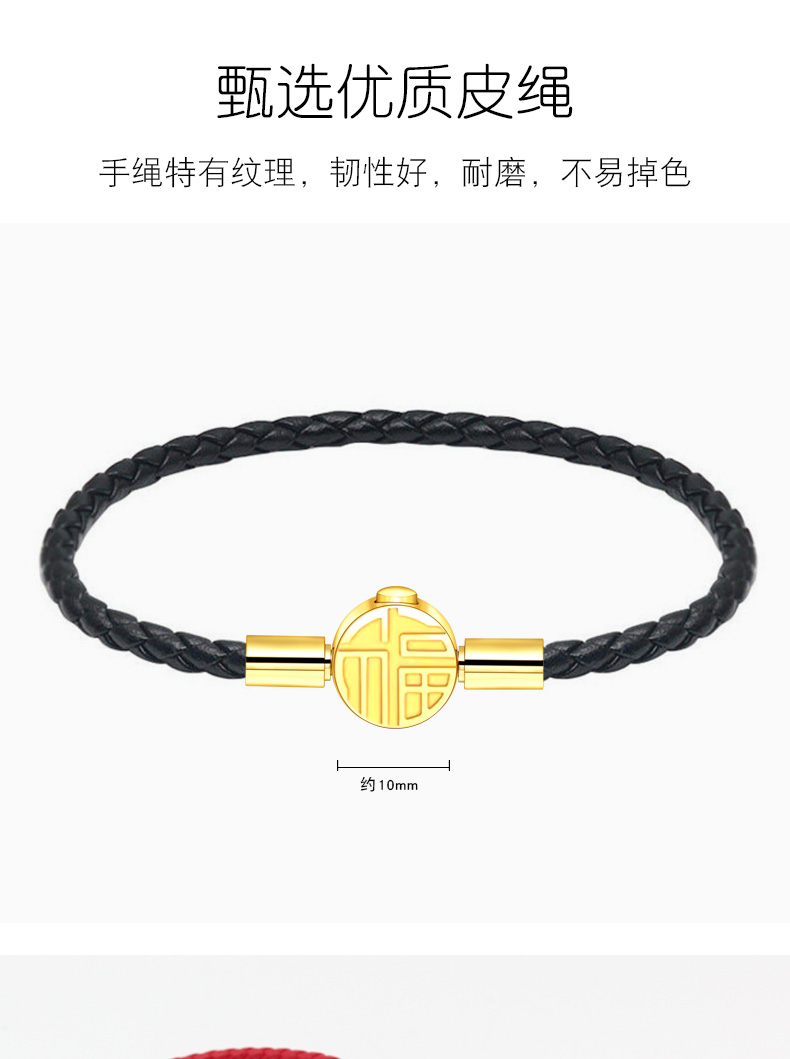 福字手绳手链可串穿3D黄金转运珠子牛皮绳替换钢丝绳本命年红绳女 MB360 MB361 MB362