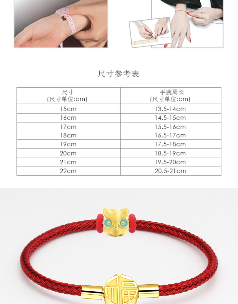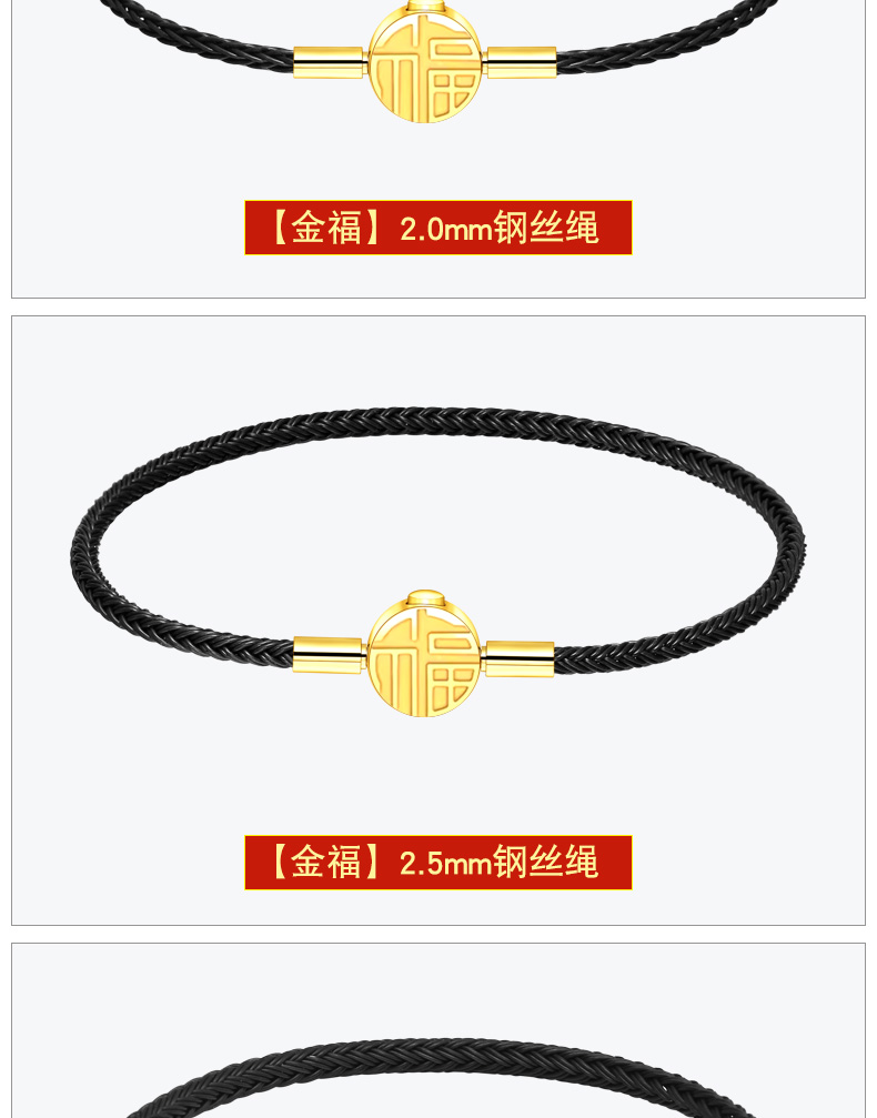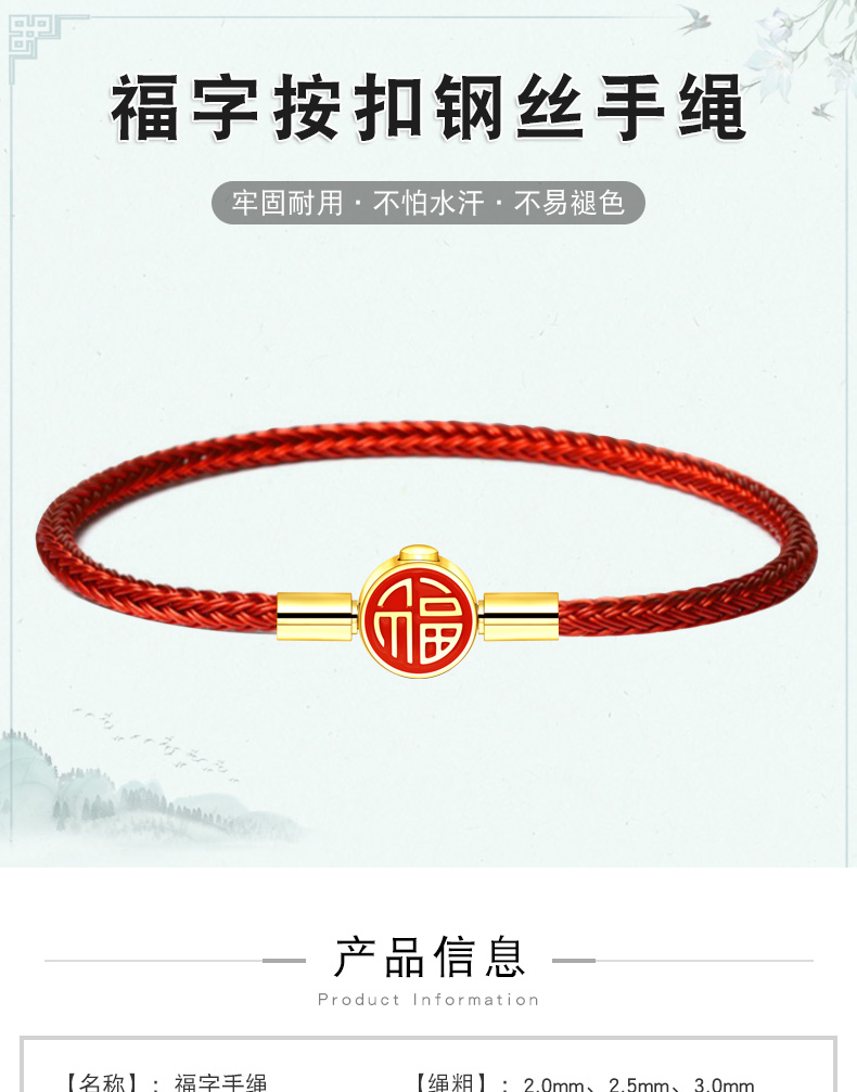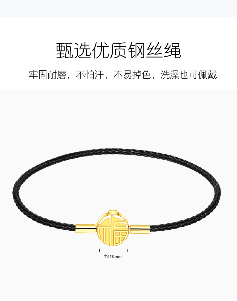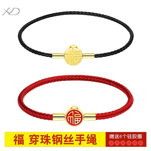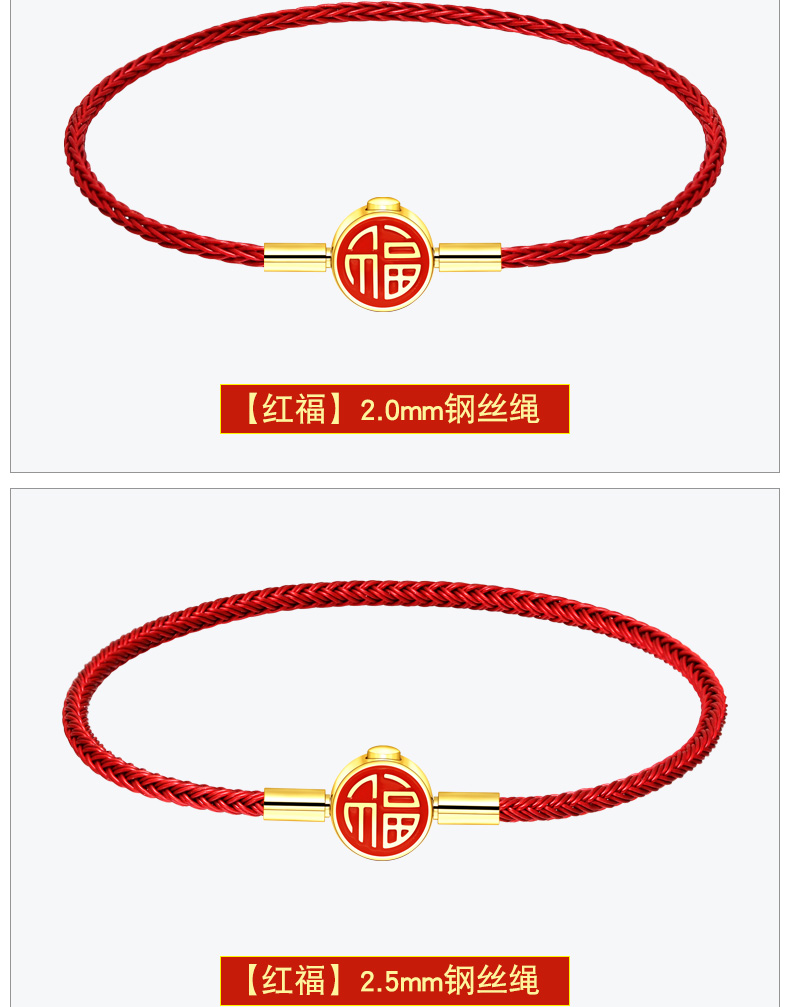 福字手绳手链可串穿3D黄金转运珠子牛皮绳替换钢丝绳本命年红绳女 MB354 MB355 MB356