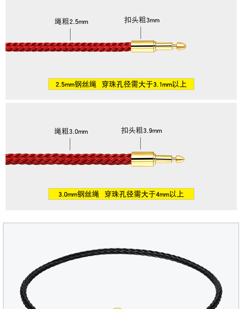 3.0mm钢丝线手绳可穿3D硬金转运珠…