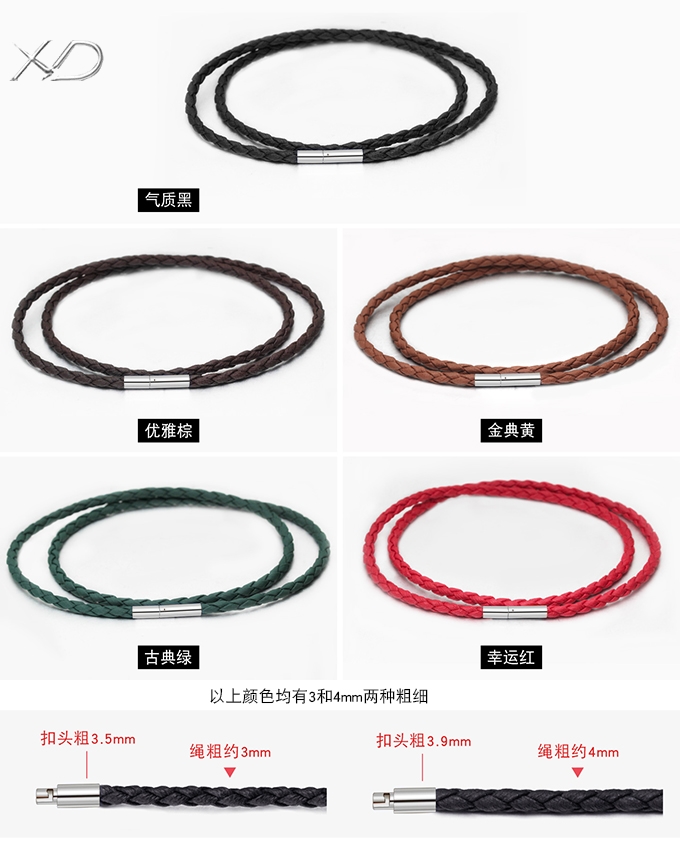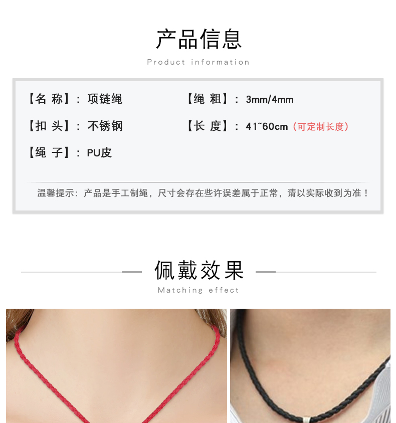 【PU绳钢色米粒扣】项链绳吊坠挂绳蜡绳黄金玉佩玉坠绳男女款红绳子女士锁骨链