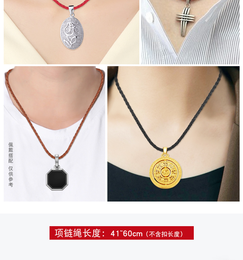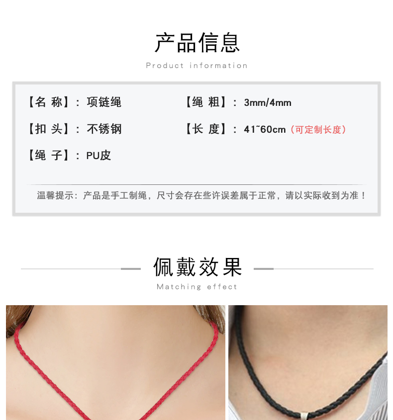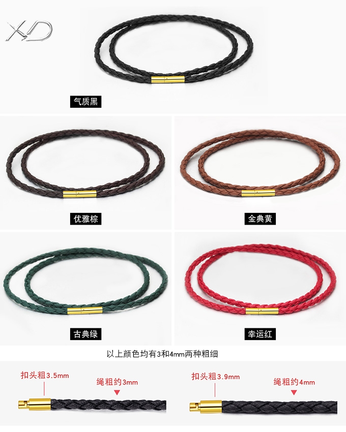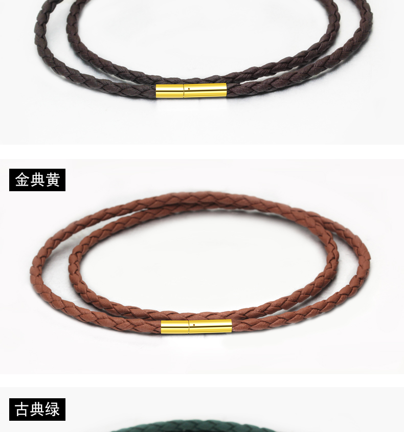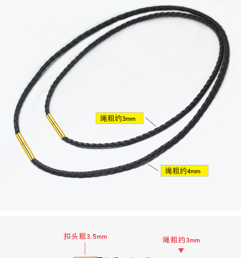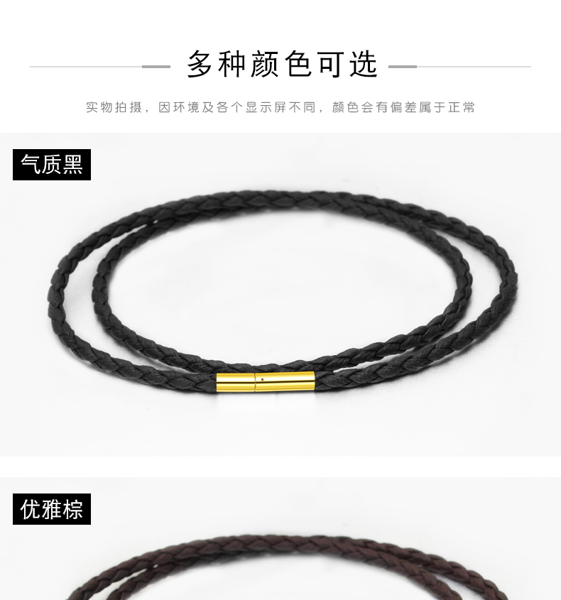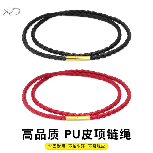 【PU绳黄金色米粒扣】项链绳吊坠挂绳挂坠绳黑色皮绳黄金翡翠水晶男女蜡绳红绳