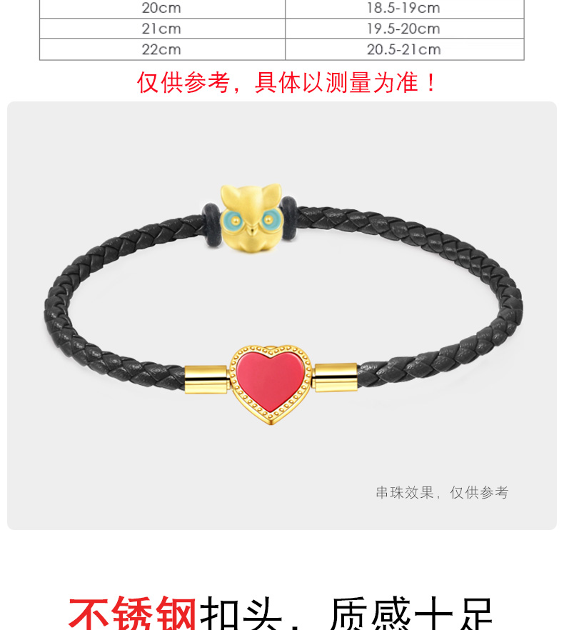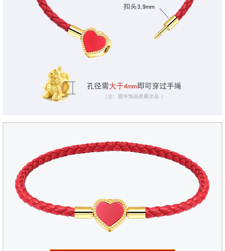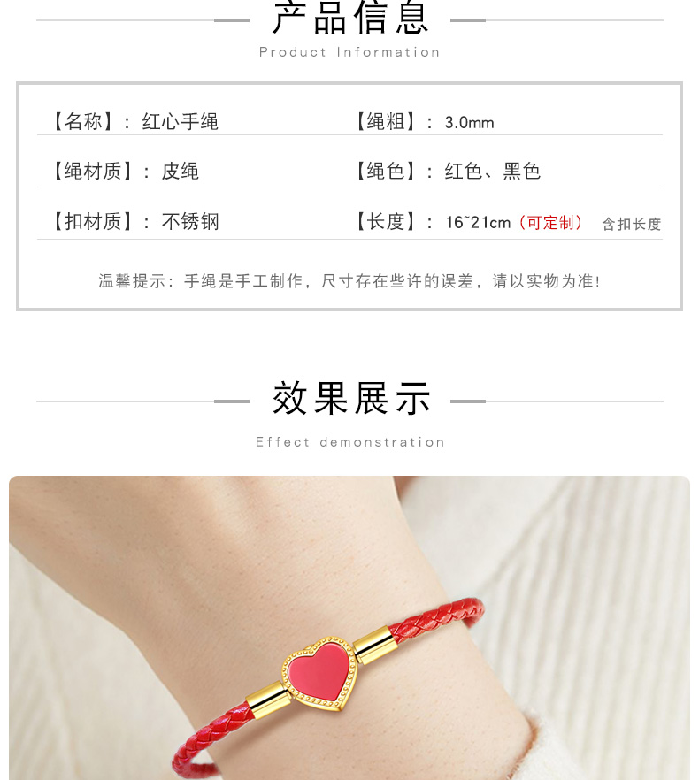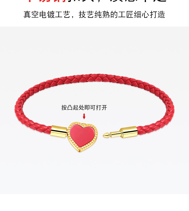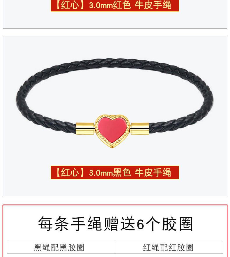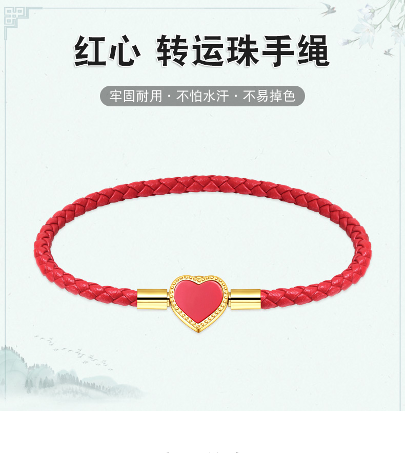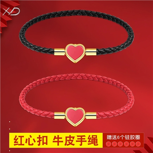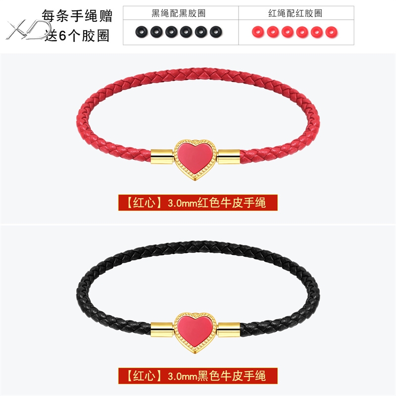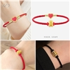女士皮绳心型爱心可爱甜美红绳穿黄金珠手链手绳闺蜜礼物送女友