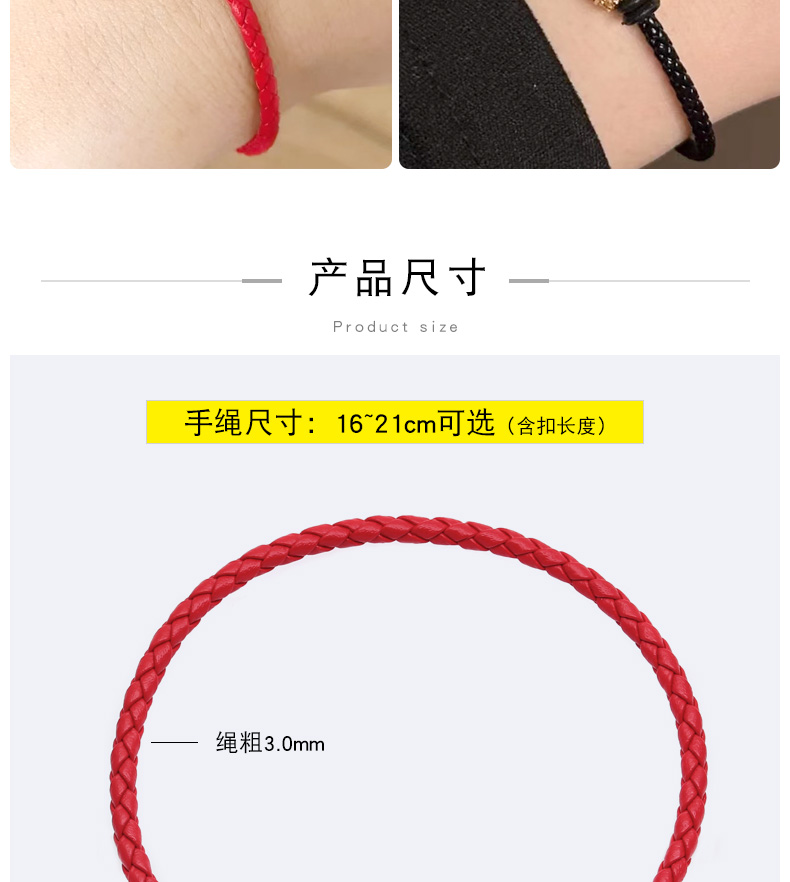 福字钢丝手绳女男本命年可穿3D硬…