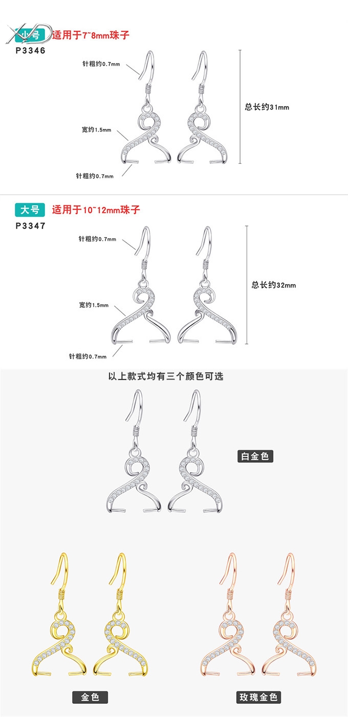 P3347玫瑰金色夹10-12mm珠子*2.2g