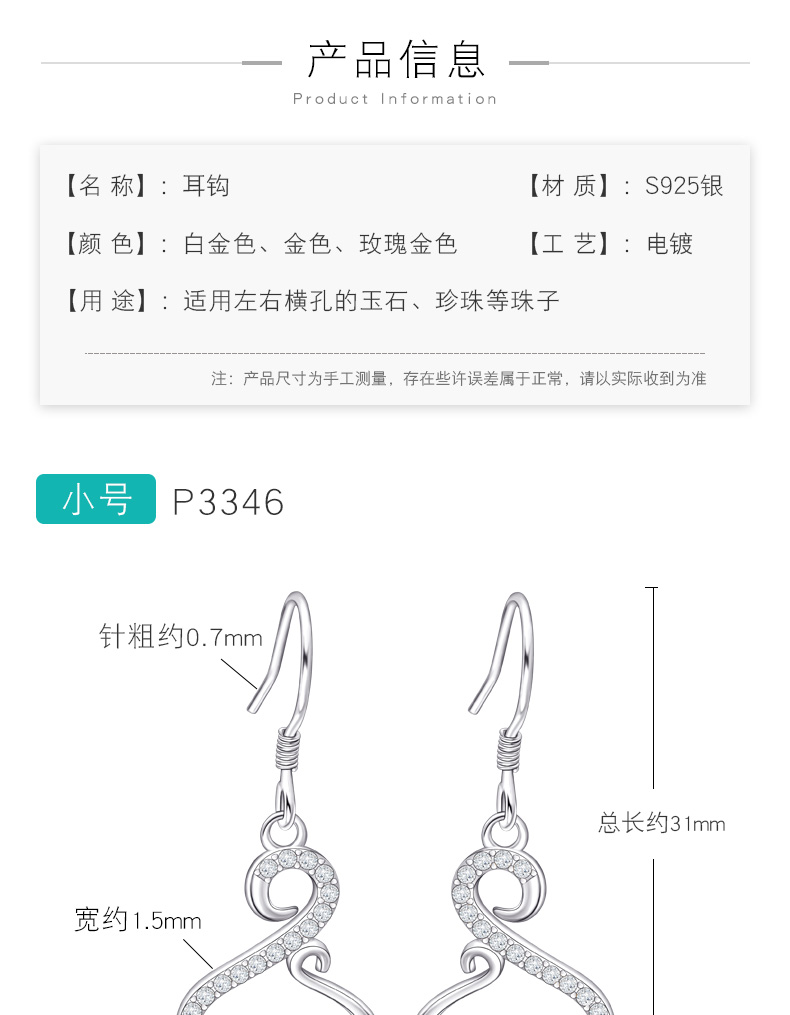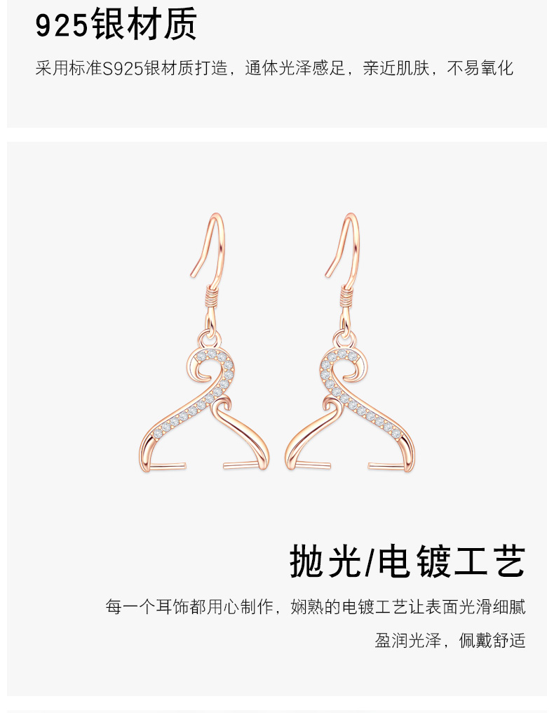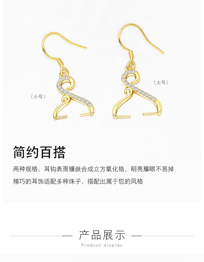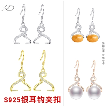925银耳钩夹扣横夹子珠子空托diy圆珠耳环配件材料