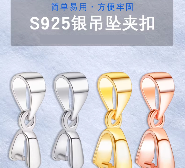 S925银扣子配件 简约气质吊坠夹扣…