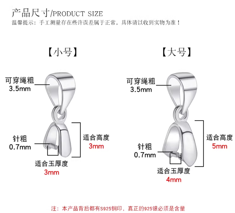 简约吊坠扣S925银扣水晶夹扣翡翠玉扣瓜子扣头玉佛男女项链搭扣子