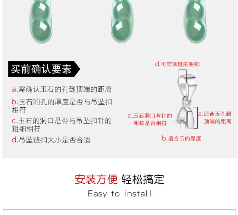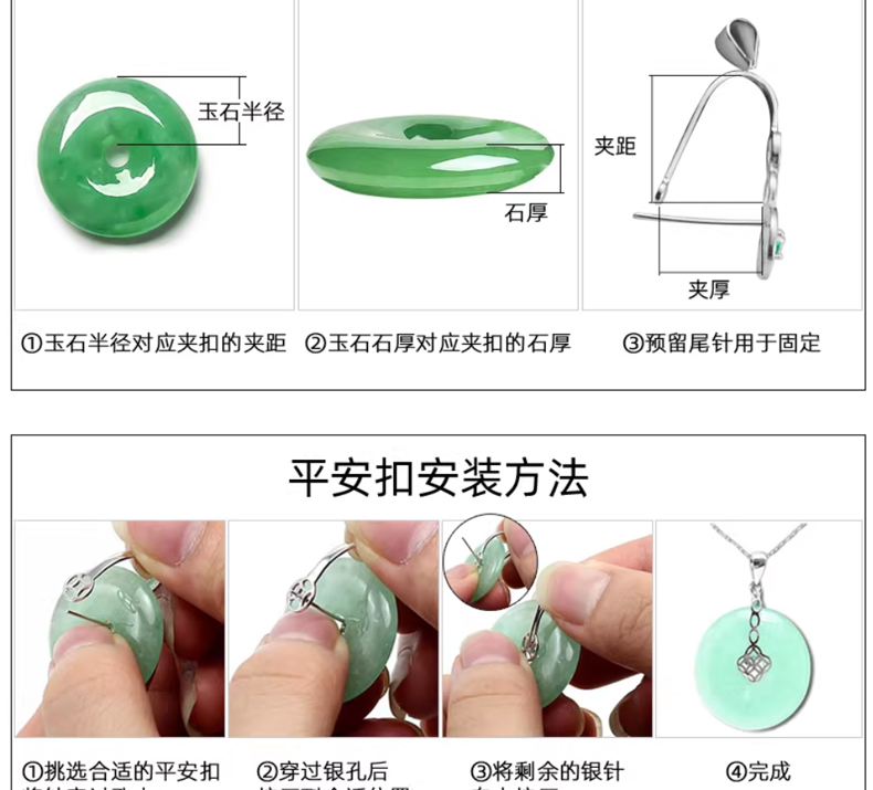 925银手链项链弹簧扣子 翡翠玉石…